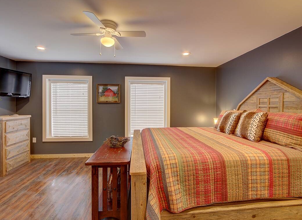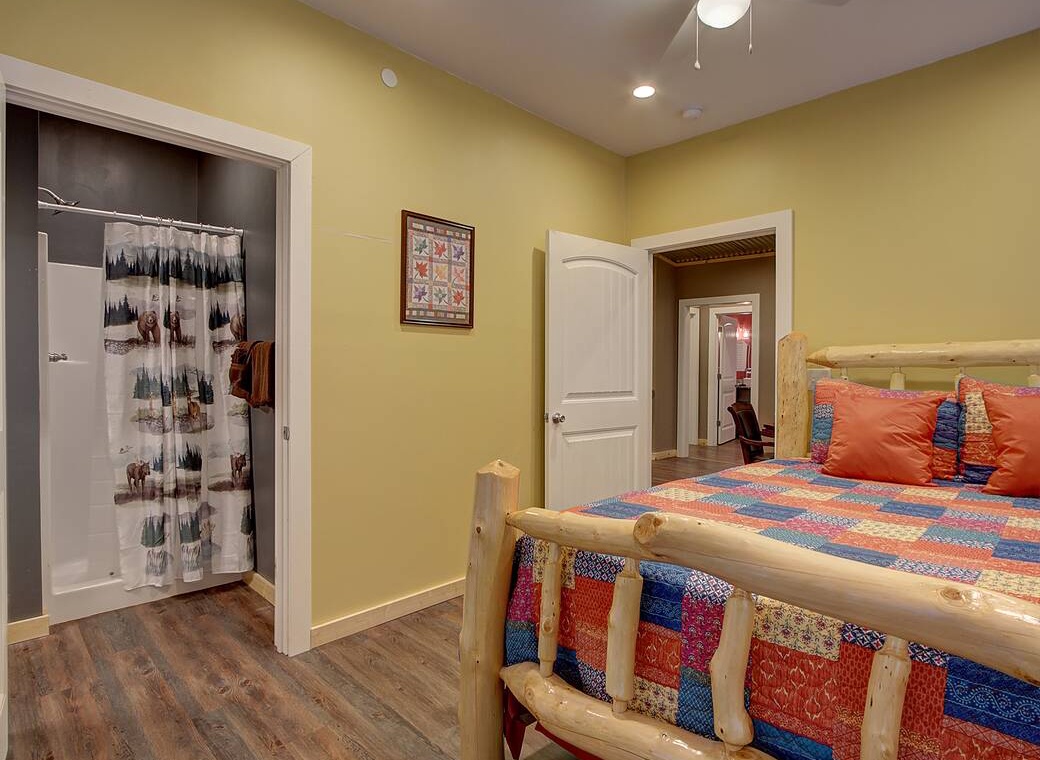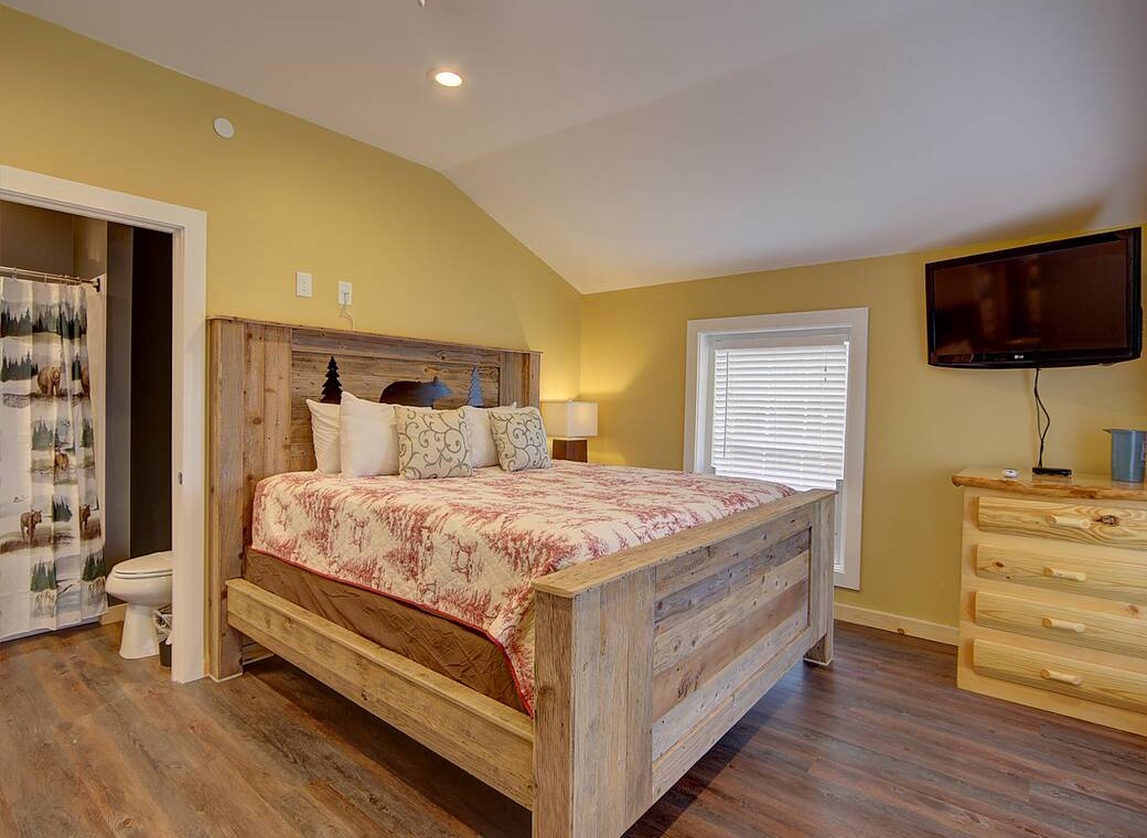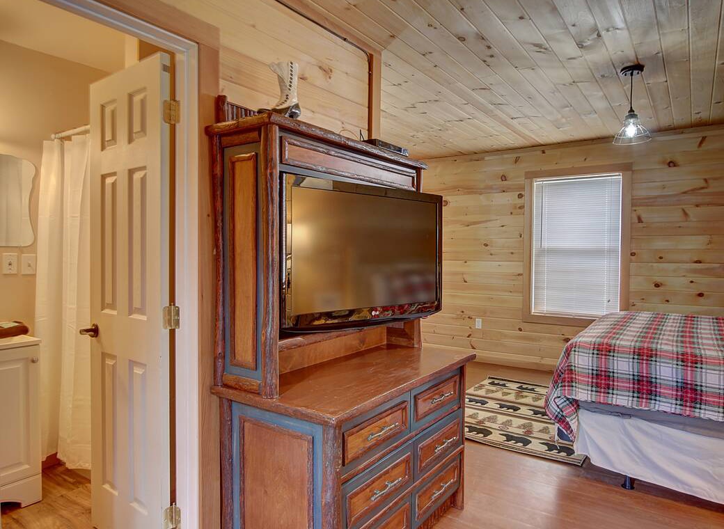 ✔ Bedroom #1 (Main Level): Comfortable bedroom with King-sized bed and a Twin bed with flat screen TV; Full Bathroom with Stand Up Shower