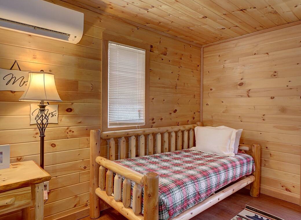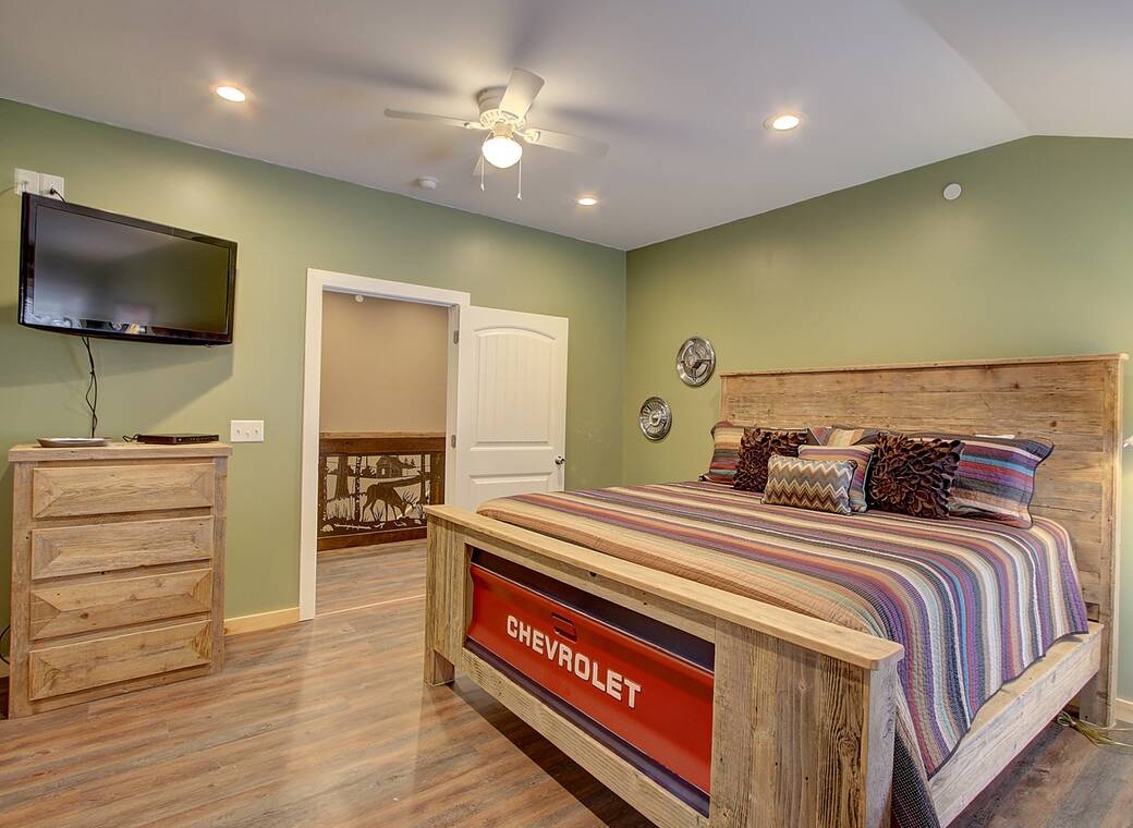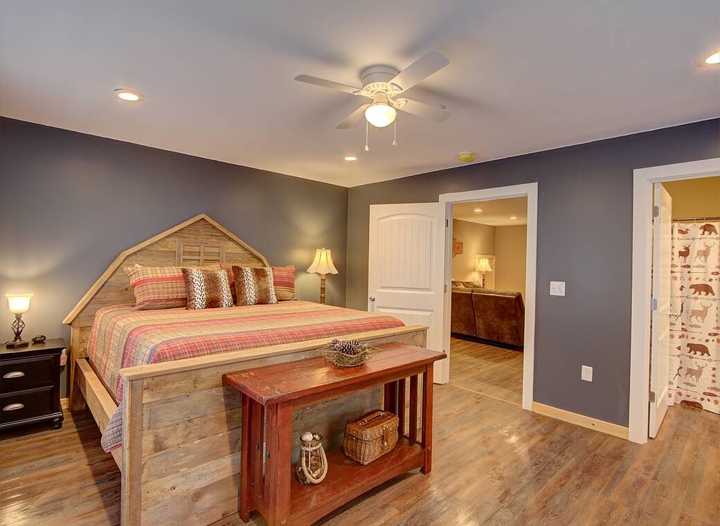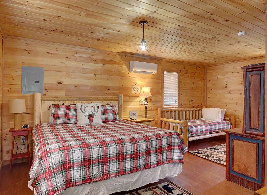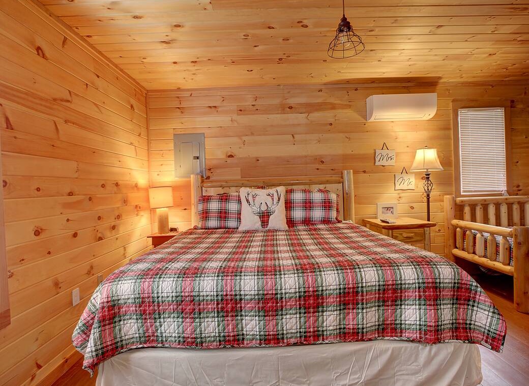 ✔ Bedroom #1 (Main Level): Comfortable bedroom with King-sized bed and a Twin bed with flat screen TV; Full Bathroom with Stand Up Shower