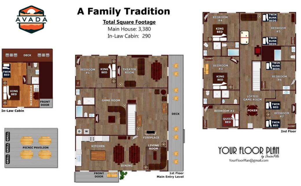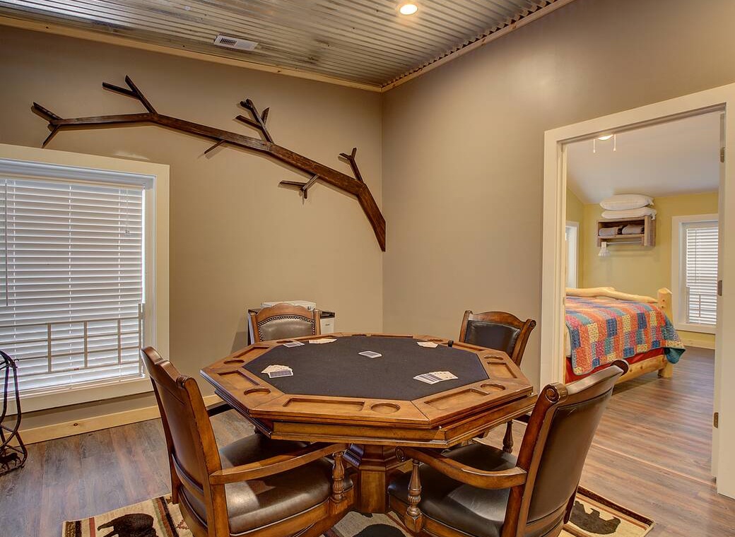 Step into the main house, a haven of seven bedrooms and six bathrooms, each meticulously crafted to offer a balance of modern amenities and rustic charm. On the main level, you’ll also find the home theater room and game room where you can unwind with your favorite movies or create moments of laughter and family fun. There’s also the fully equipped kitchen and adjacent dining area - the perfect spot to prepare hearty meals and enjoy them with your loved ones. In addition to the main house, the 1 BD mini-cabin features a comfortable King bed, a well-appointed bathroom, and a convenient kitchenette, providing a secluded haven for relaxation and privacy.