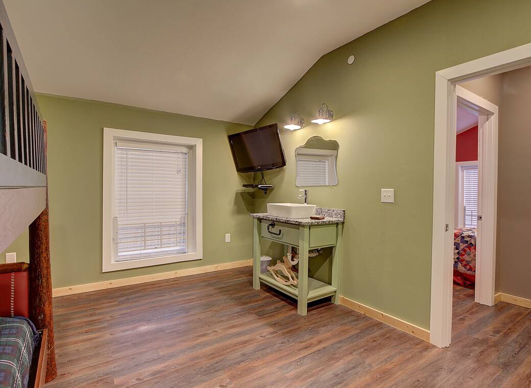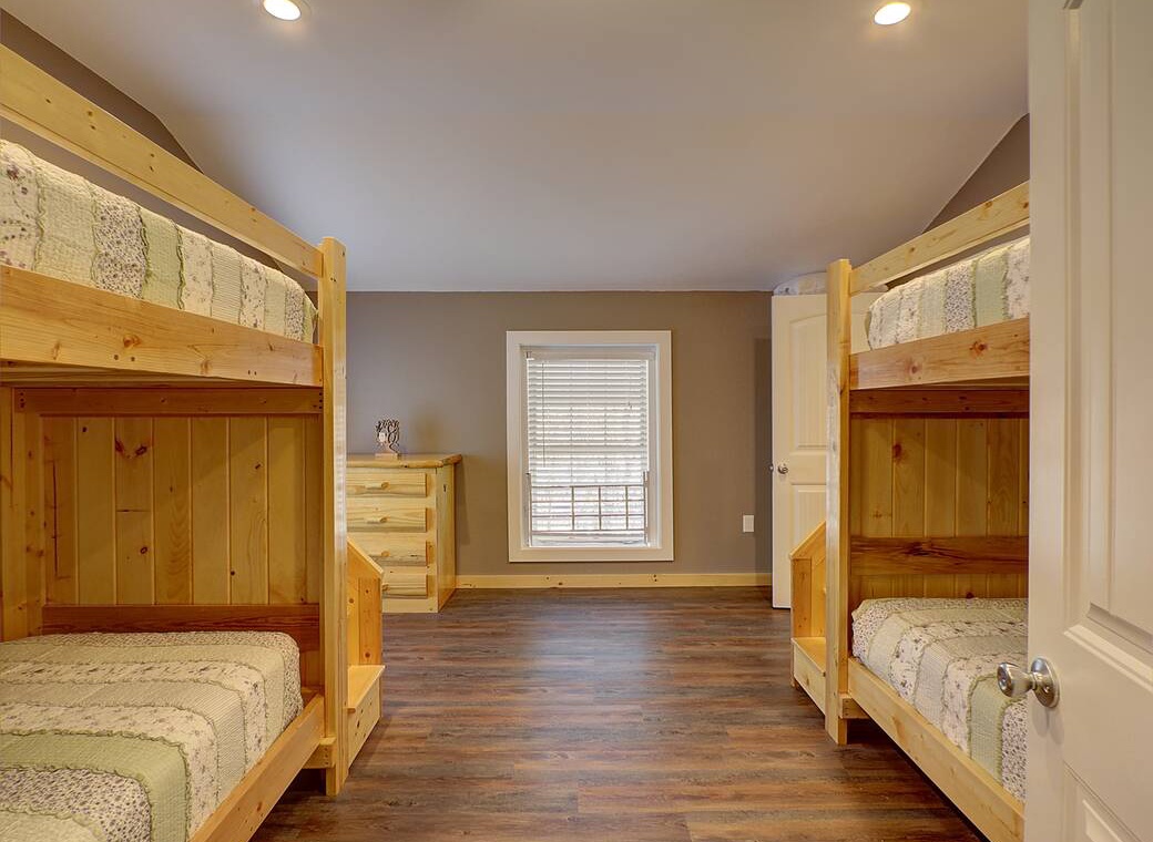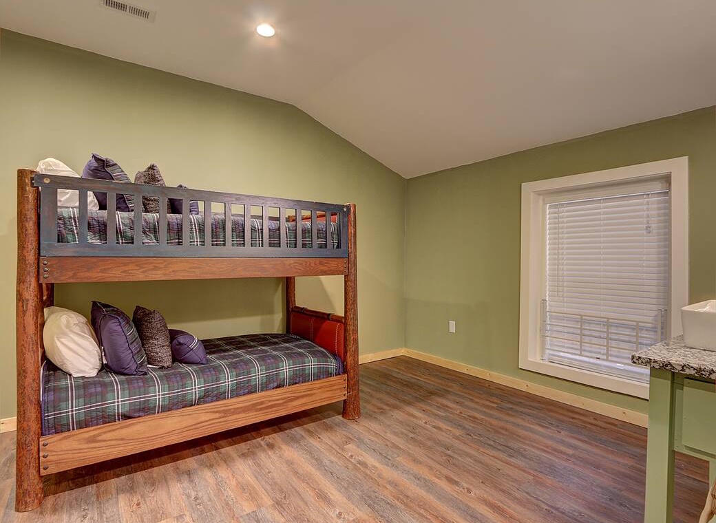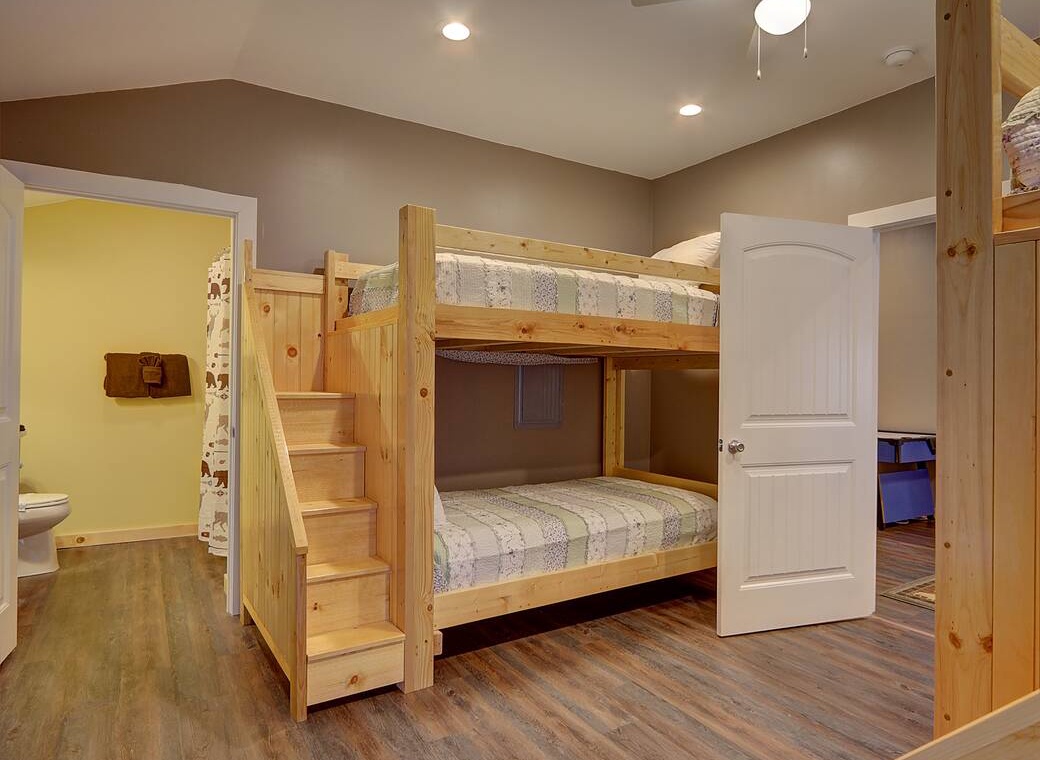 ✔ Bedroom #7 (Upstairs): Comfortable bedroom with 2 Twin-over-Twin bunk beds & flat screen TV; attached full-sized bathroom with Shower/Tub combo