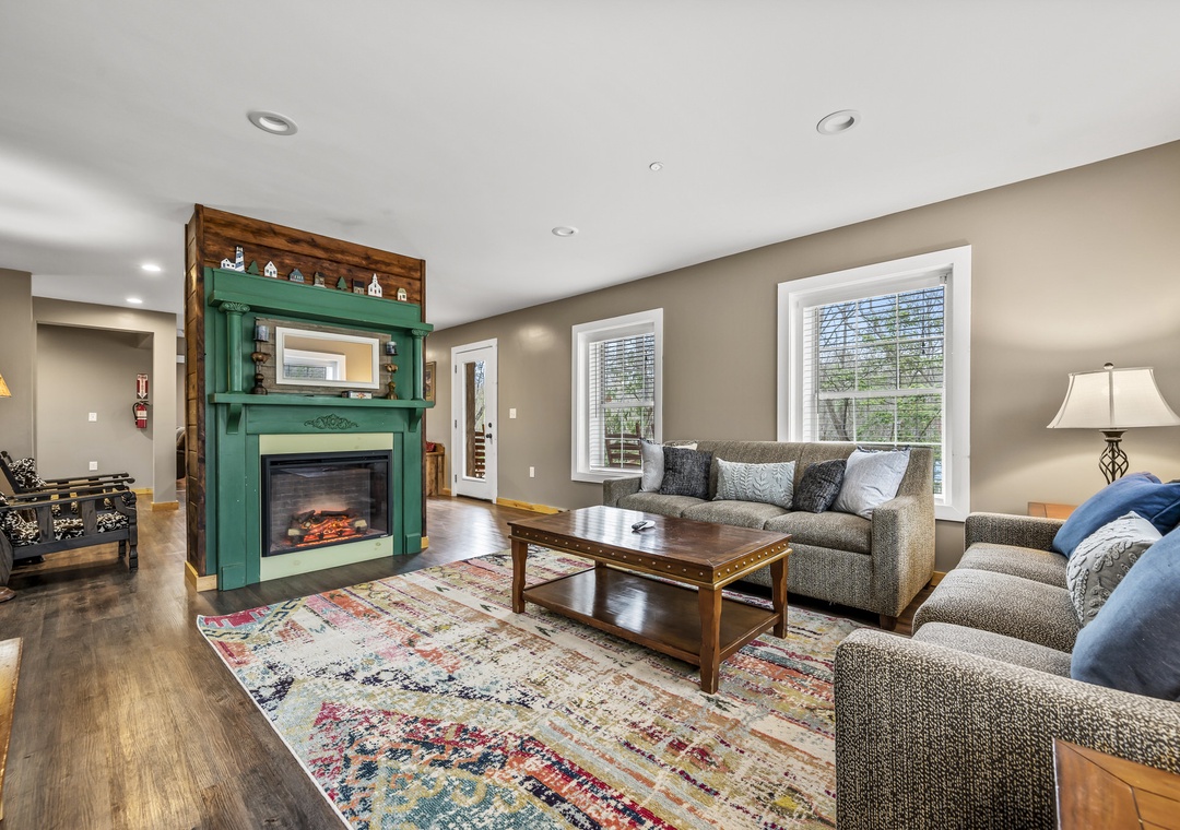 ✔ Inviting living area with fireplace and huge flat-screen TV