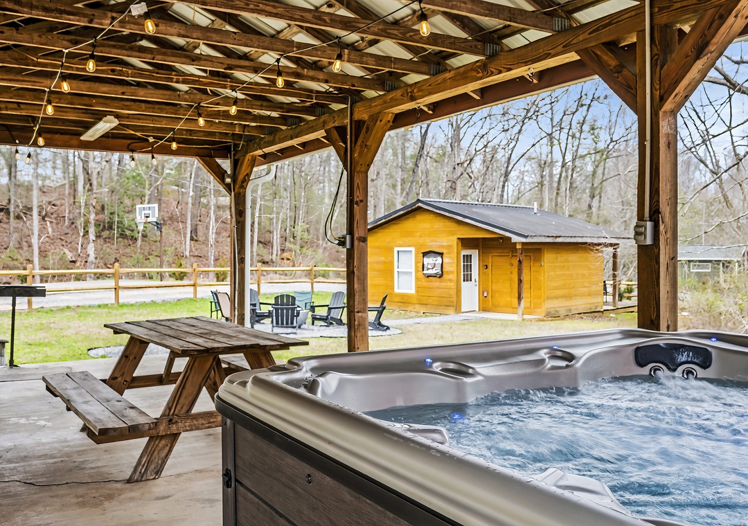 The joy of togetherness is complemented by a range of entertainment options here at “A Family Tradition!” For movie nights that rival the cinema experience, our dedicated home theater is at your disposal. Sink into plush seating and let the cinematic ambiance transport you to a world of entertainment right within the comfort of your Smoky Mountains retreat. For those seeking a touch of friendly competition, the game room offers an array of options. Challenge family members to a round of pool or arcade which invites players of all ages to indulge in classic and modern gaming experiences, adding an extra layer of entertainment to your stay. Venture outdoors to discover even more entertainment options on the expansive grounds. Test your aim with a game of horseshoes or challenge friends to a round of basketball on our half-court. As the sun sets behind the majestic Smoky Mountains, gather around the fire pit or under the covered picnic pavilion for an evening of relaxation and camaraderie. In the summer months, you will have access to an outdoor shared pool just a few steps away! Whether you're looking to take a refreshing swim, lounge poolside, or play water games with the family, this shared amenity adds another layer of fun to your stay.