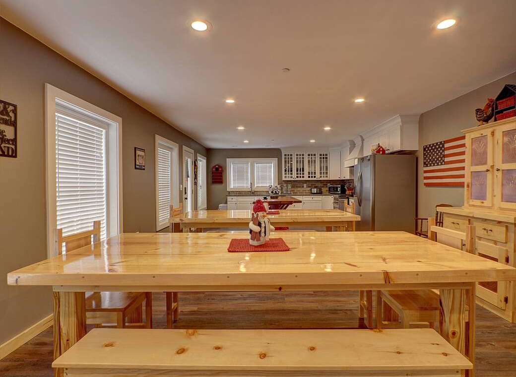 The spacious kitchen serves as a culinary hub making it a delight for both casual family meals and elaborate gatherings. Well-appointed with a full-sized refrigerator, dishwasher, stove, microwave, and other kitchen appliances perfect for making breakfast, lunch, or dinner throughout your stay! All pots, pans, glasses, plates, silverware, etc. are also there for you! The dining area, adjacent to the kitchen, features a welcoming atmosphere where you can share delicious meals and engage in lively conversations with your loved ones while taking in the natural beauty of the surroundings.