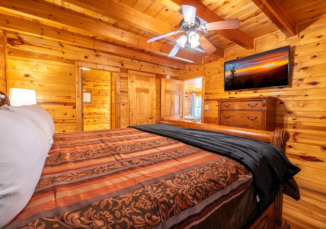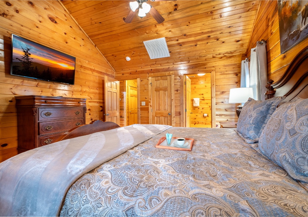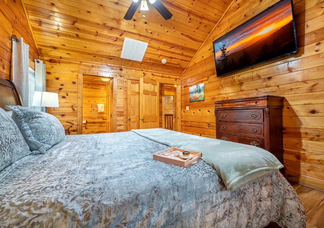 ✔ Bedroom #3 (Upper Level): Cozy Bedroom with a King Bed, Flat-screen TV (HULU+ Live TV, Disney+ and HBO MAX); Attached Full Bathroom with Shower/Tub Combo