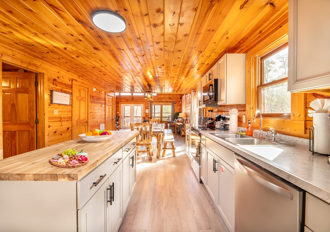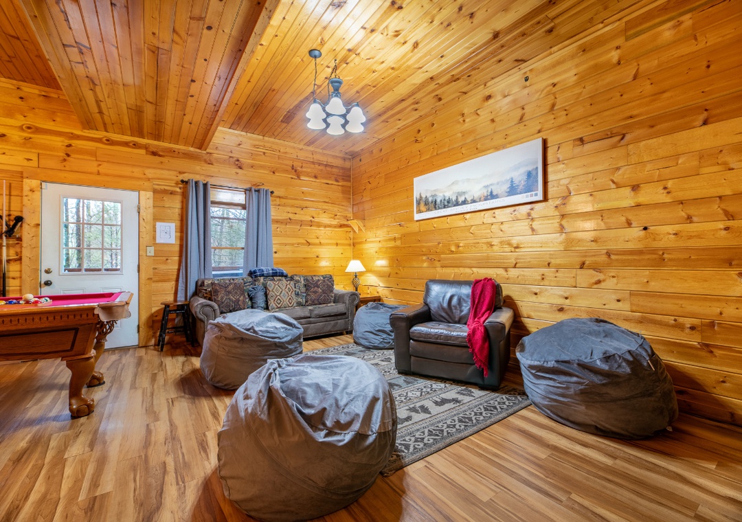Step inside and you’ll be welcomed into a warm and inviting space designed for comfort, relaxation, and entertainment. The heart of the home is the spacious living room, where a huge 70-inch smart TV and a propane fireplace set a cozy ambiance, perfect for gathering around on chilly evenings. The kitchen is a dream for any home chef. Whether you're whipping up a big breakfast before a day of adventure or preparing a late-night snack, this kitchen is stocked with all the cookware, dishes, and utensils you need. Downstairs, the game room is the perfect place to gather. It features a full-size pool table and a multicade arcade system. The 75-inch smart TV, a Nintendo Switch, and a second propane fireplace add warmth and charm, creating an inviting space to relax between games. Free WiFi is also available throughout the property.