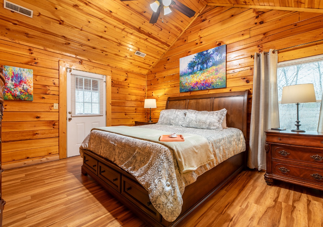 ✔ Bedroom #2 (Upper Level): Comfortable Bedroom with a King Bed, Flat-screen TV (HULU+ Live TV, Disney+ and HBO MAX); Attached Full Bathroom with Shower/Tub Combo