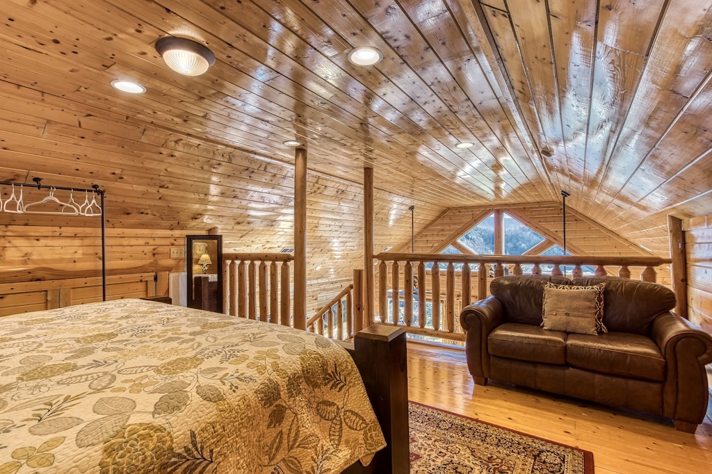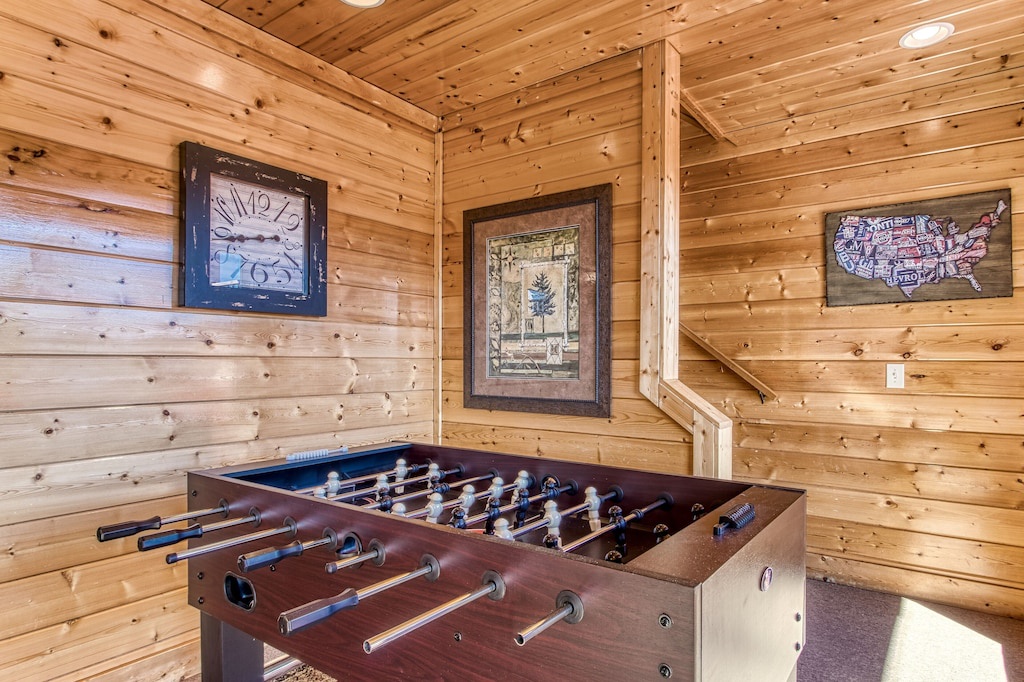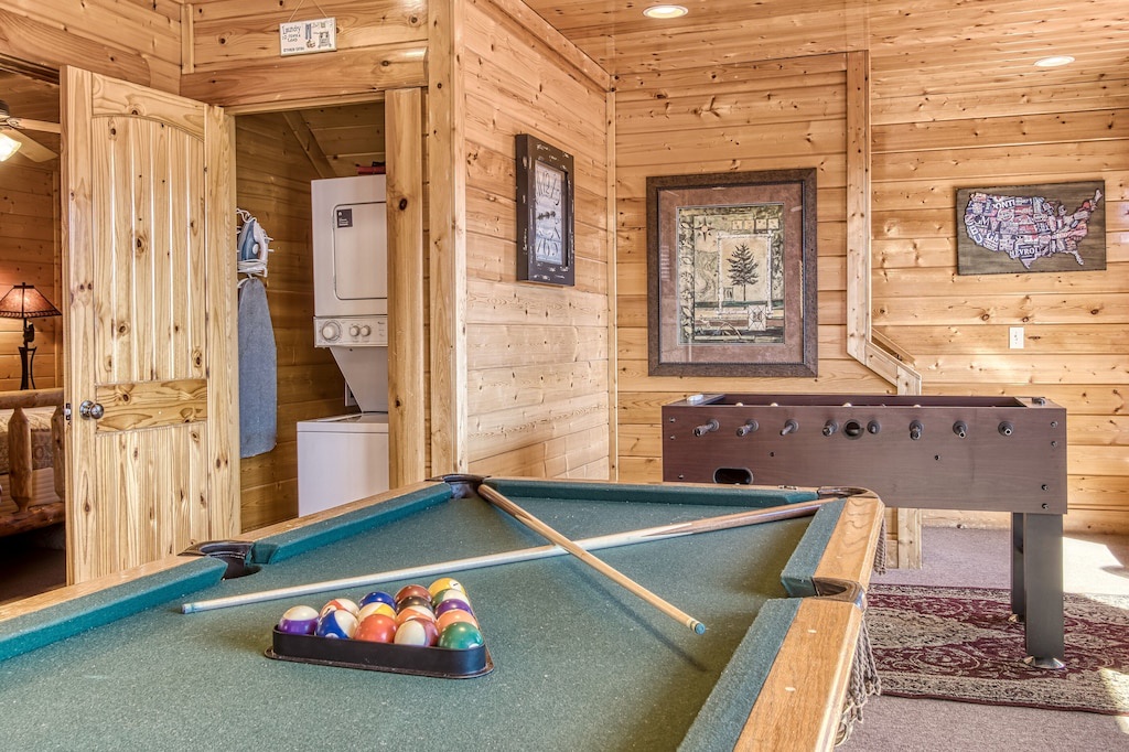 “A View is Forever” is the perfect place to stay and play or relax! The upstairs loft hosts an additional living space and a comfy couch. For those seeking a bit of friendly competition, the game room is sure to be a highlight. Challenge your friends and family to a round of pool or foosball, and create lasting memories as you cheer each other on. And outside, you are greeted with a huge hot tub that overlooks the scenic mountain views. Relax in a rocking chair while sipping your morning coffee or evening glass of wine. Whether you're planning a family vacation, a romantic getaway, or a fun-filled adventure with friends, this cabin has it all.