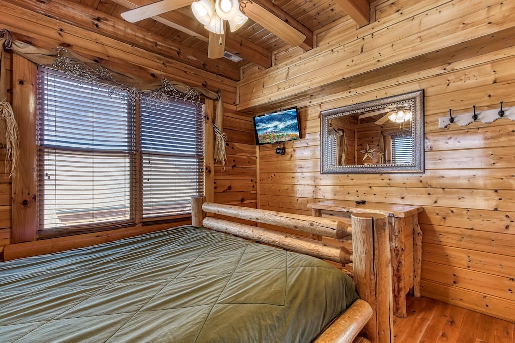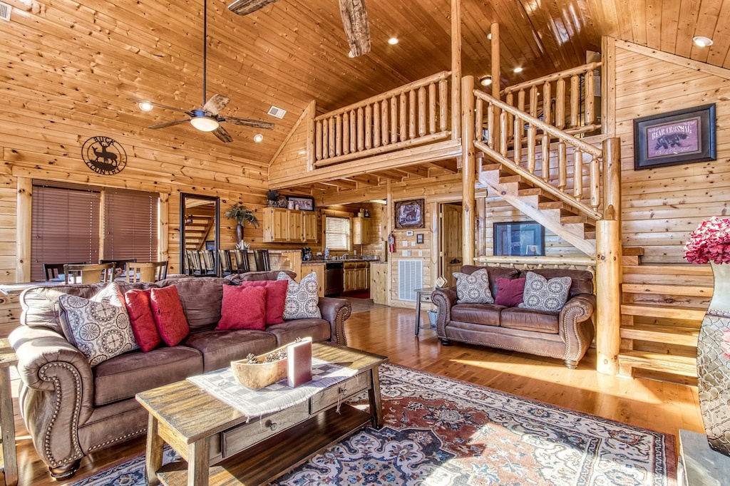"A View is Forever" brings you spectacular views, all while being conveniently located just a short drive away from downtown Pigeon Forge and Gatlinburg. Surrounded by nature's beauty, our cabin is the perfect destination for those seeking tranquility, adventure, and a deep connection with the great outdoors. Our floorplan is ideal for both families and couples alike and is the perfect get-a-way. So, pack your bags – because the mountains are calling!