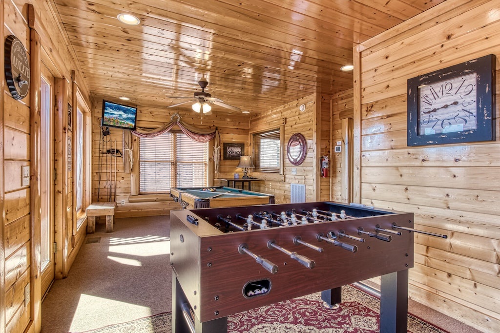 ✔ Spacious Game Room (pool table, foosball, TV, sitting area & VIEWS!)