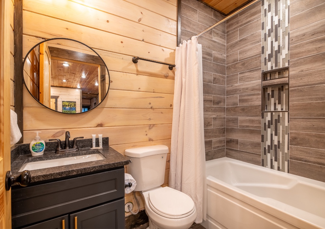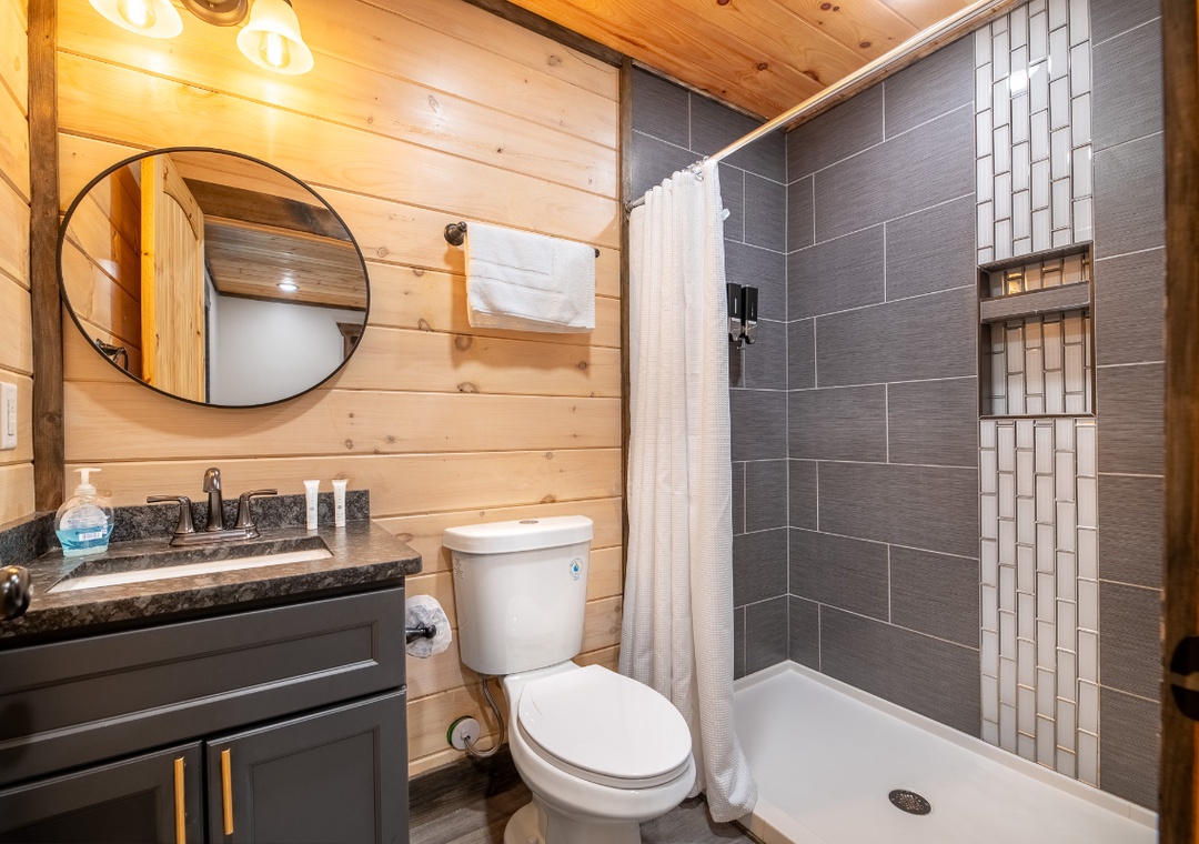 ✔ There is also a full bathroom with a shower/tub combo and a half bath on the lower level.