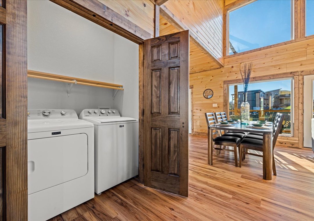 Complimentary starter toiletries, linens/towels, free WiFi, air conditioning, central heat, full-sized washer and dryer.