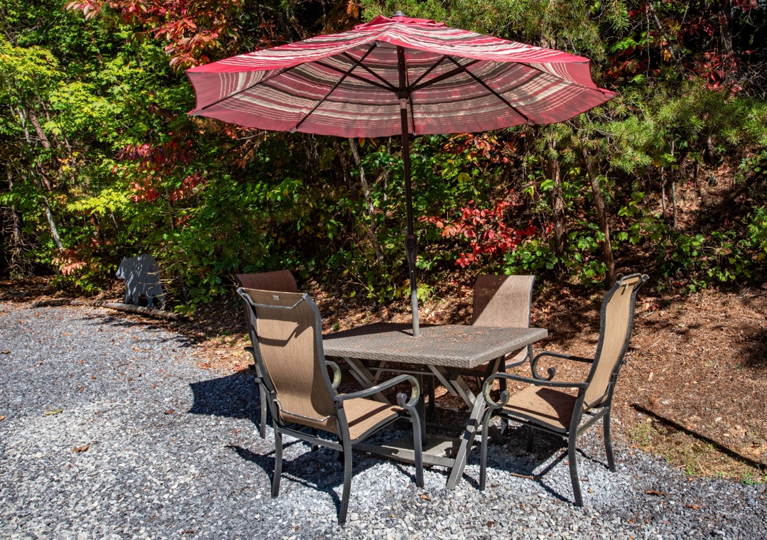 The fully-equipped kitchen is as functional as it is inviting. Well-appointed with a full-sized refrigerator, dishwasher, stove, microwave, and other kitchen appliances perfect for making breakfast, lunch, or dinner throughout your stay! All pots, pans, glasses, plates, silverware, etc., are also there for you! Gather around the inviting dining table inside, or take your meal out to the picnic table to share stories and laughter beneath the trees, each bite made even better by the fresh mountain air and the natural beauty all around.
