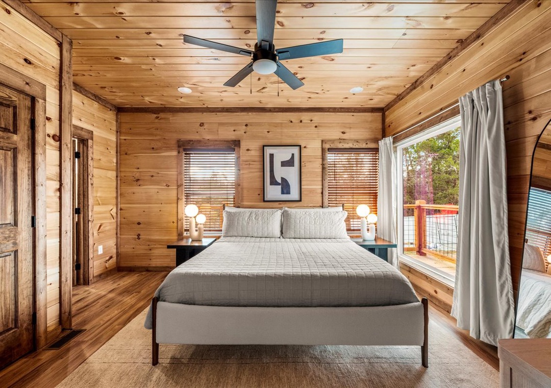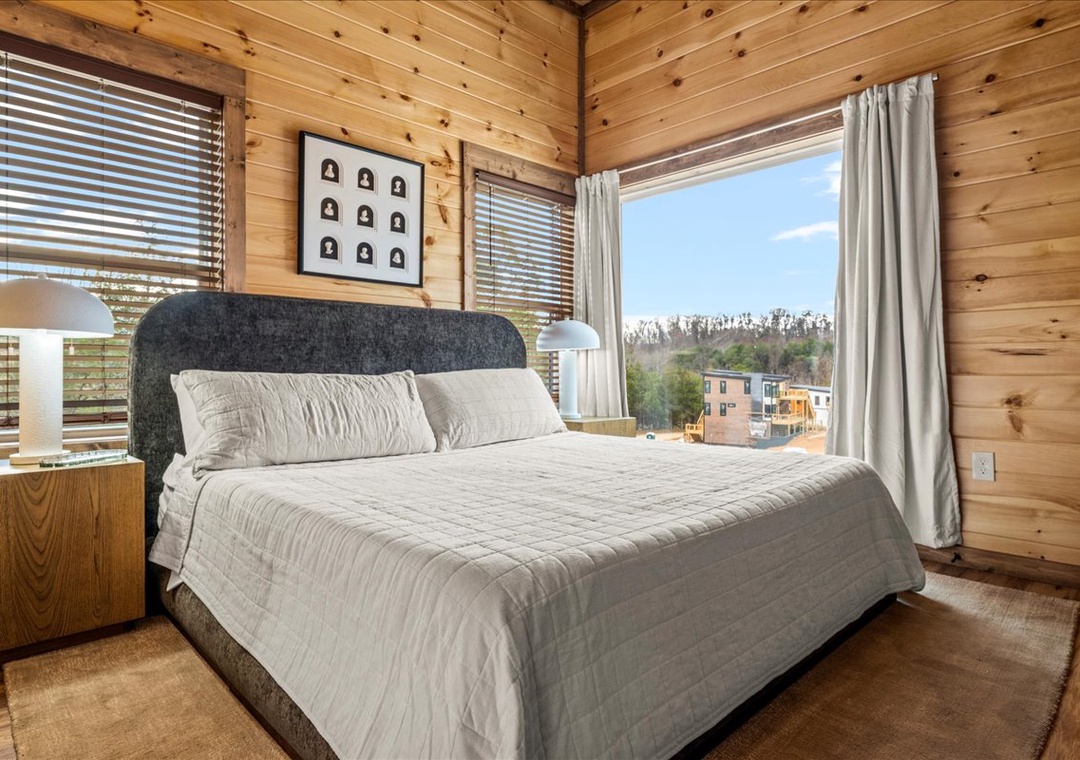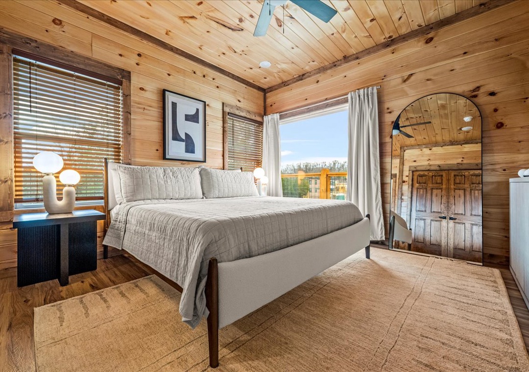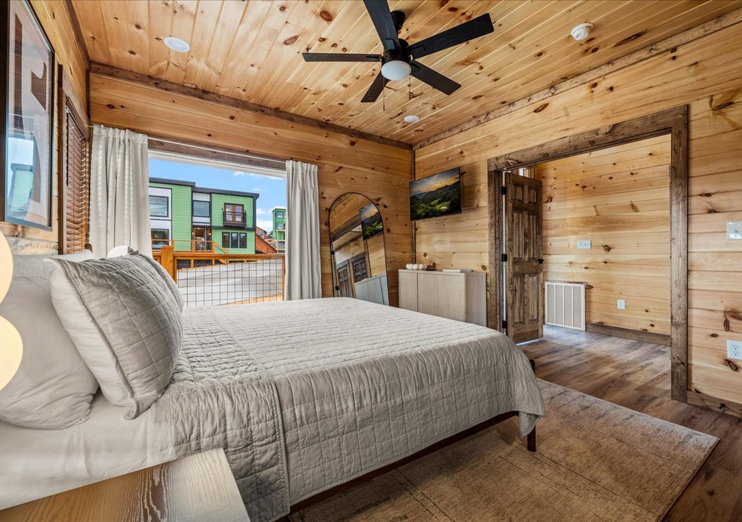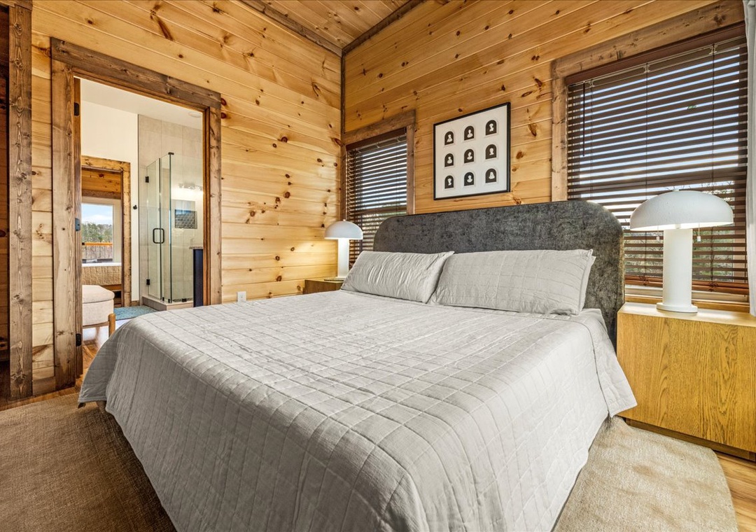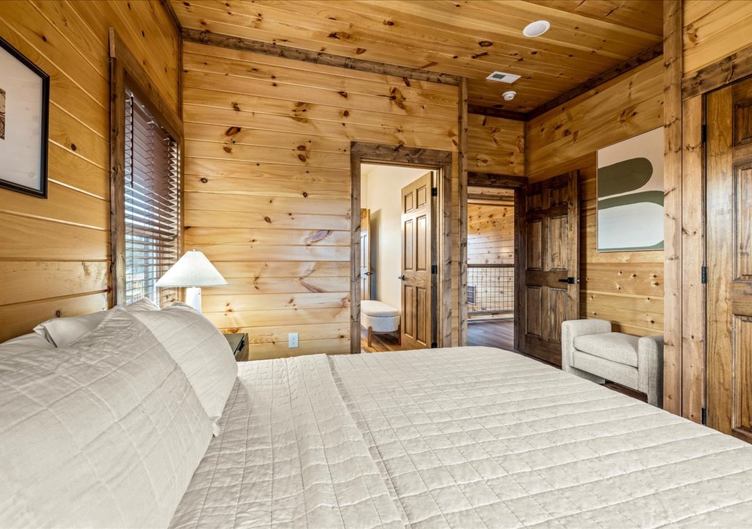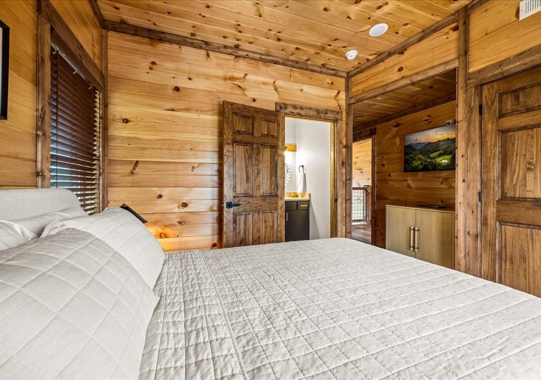 ✔ Bedroom 3 (Upper Level): Cozy Bedroom with a King-Bed and a flatscreen TV; Access to a Full Bathroom with Stand Up Shower
