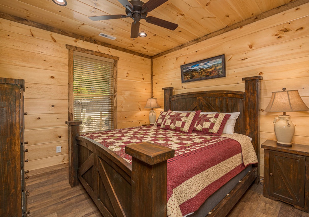 ✔ Bedroom #1 (Upper Level): Spacious Bedroom with a King-sized Bed and a Flat-screen TV, Attached Full Bathroom with Shower/Tub Combo