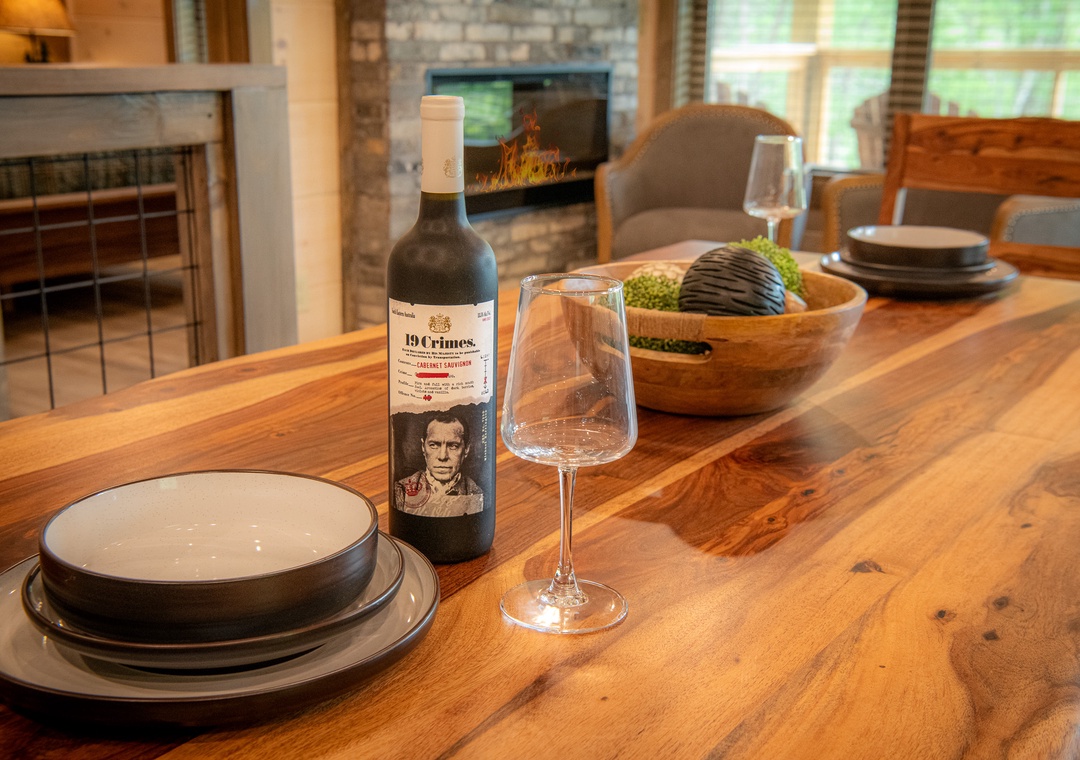 As you step inside, the cabin's open-concept living space greets you with an inviting ambiance. The living room, centered around a sleek electric fireplace, exudes warmth and style. Plush sofas beckon you to sink in and relax, creating the ideal setting for intimate conversations, reading a good book, or simply enjoying the fire's gentle glow. Large windows flood the space with natural light and offer breathtaking views of the surrounding greens, seamlessly blending the indoor and outdoor experiences. Adjacent to the living room, the fully equipped kitchen stands ready to inspire your culinary adventures. Venture downstairs to discover the ultimate entertainment haven. The highlight of this level is the private theater room, featuring a massive 86" LG Smart TV. Throughout the cabin, thoughtful design elements and modern amenities cater to your comfort and convenience. Free WiFi is also available throughout the property.