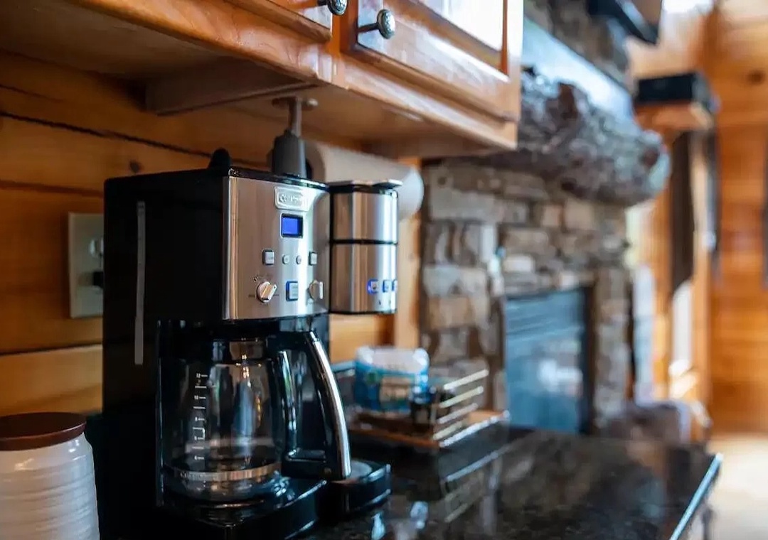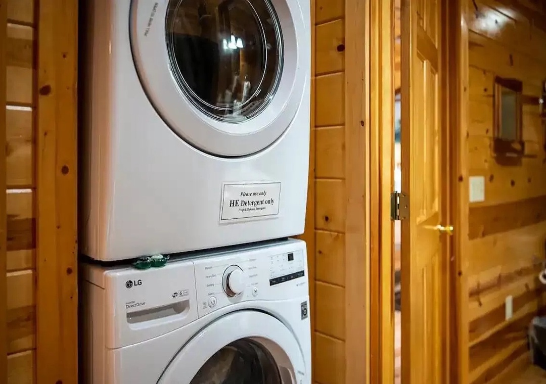 The cabin’s fully equipped kitchen is a chef’s delight. Complete with a full-sized refrigerator, dishwasher, stove, microwave, and other kitchen appliances perfect for making breakfast, lunch, or dinner throughout your stay! All pots, pans, glasses, plates, silverware, etc. are also there for you! Gather around the rustic wooden dining table where laughter and conversation flow as freely as the mountain breeze.