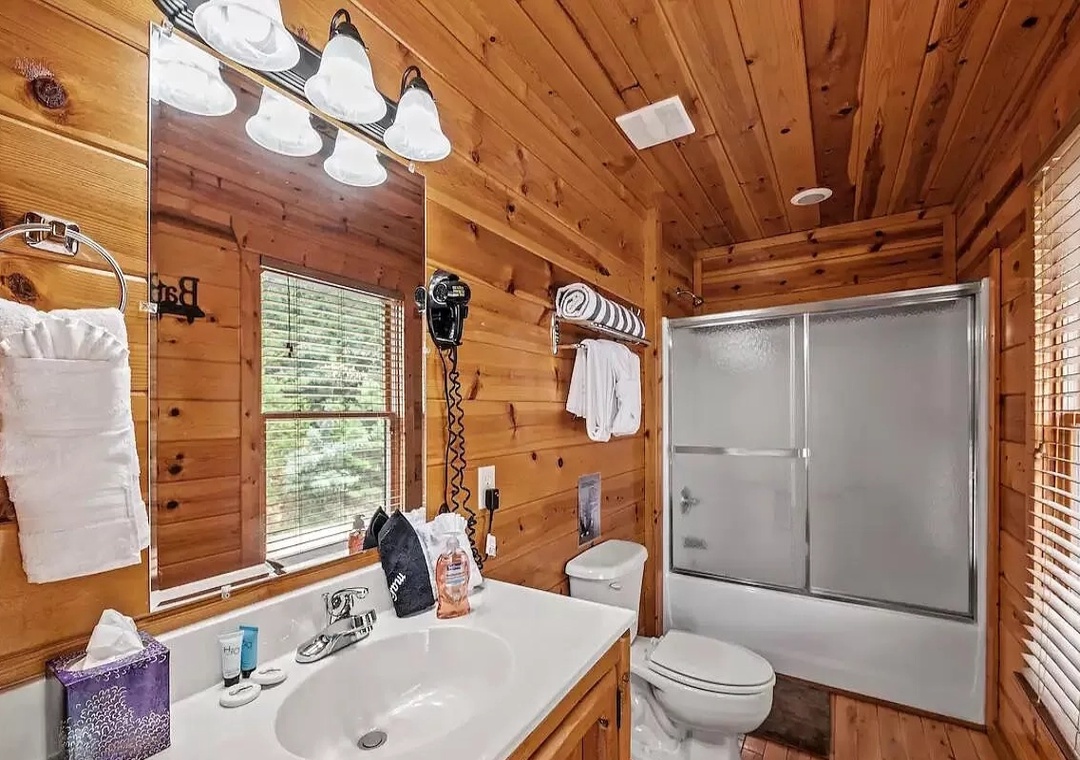 Our group of 6 had a relaxing and great time at this cabin! The location is great as it is easy to get to Pigeon Forge and Gatlinburg through a few back roads. Each room was on its own floor and had their own bathrooms. We all enjoyed the living room set up and the kids enjoyed the game room and hot tub. We’ll return to this cabin again!- Reviewed On: 6/9/2024