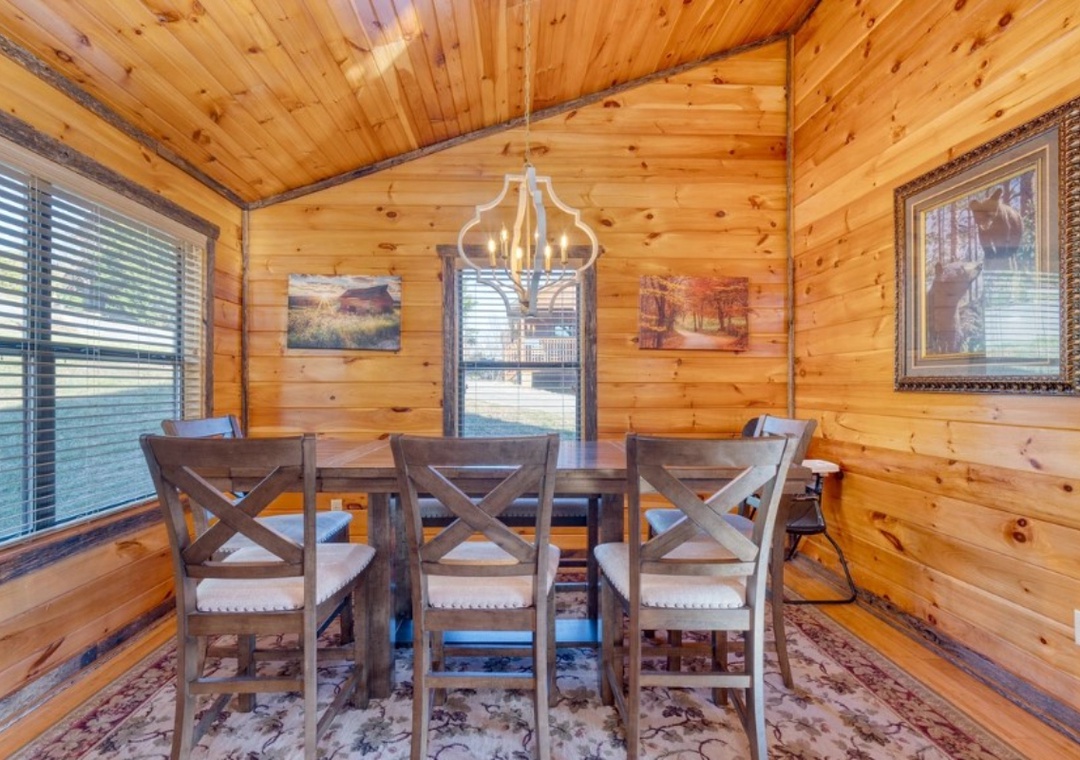 The minute you arrive at "Bear Cove," you can sit back and relax inside or outdoors! Enjoy a cup of coffee (or moonshine) on the outdoor decks, relax in a rocking chair, take a dip in the bubbling hot tub, or grill up some dinner on the outdoor BBQ grill. Our resort community also has a great community pool (seasonal), which is perfect for those warm summer days! Inside our cabin, head down to the game room for a round of pool, a game on the arcade, or watch the big game on the huge flat screen TV with your family! Or, just kick back in a comfy chair or one of multiple couches and take a nap! After all, it is a vacation!