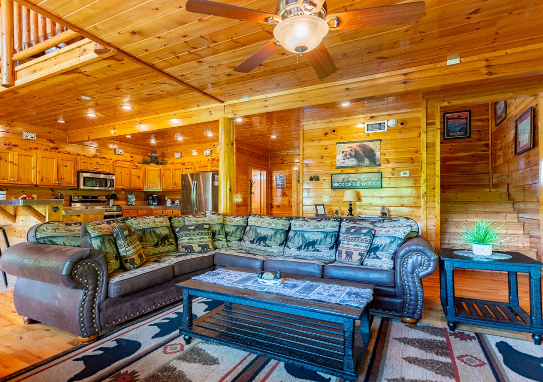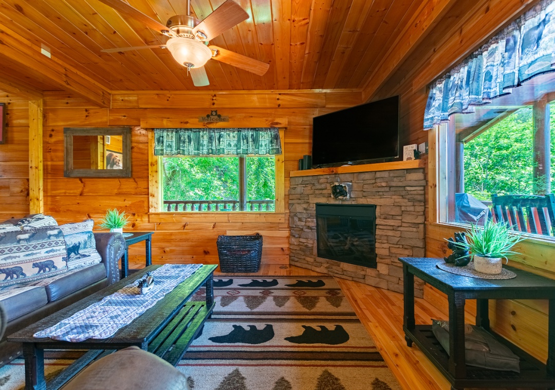 Bear Essentials Lodge offers you all the luxuries and amenities your friends and family could desire, all while being conveniently located in the heart of the Great Smoky Mountains AND just a short drive to Pigeon Forge or Gatlinburg. Our floorplan is ideal for both families or couples alike and is the perfect get-a-way. So, pack your bags “ because the mountains are calling!!