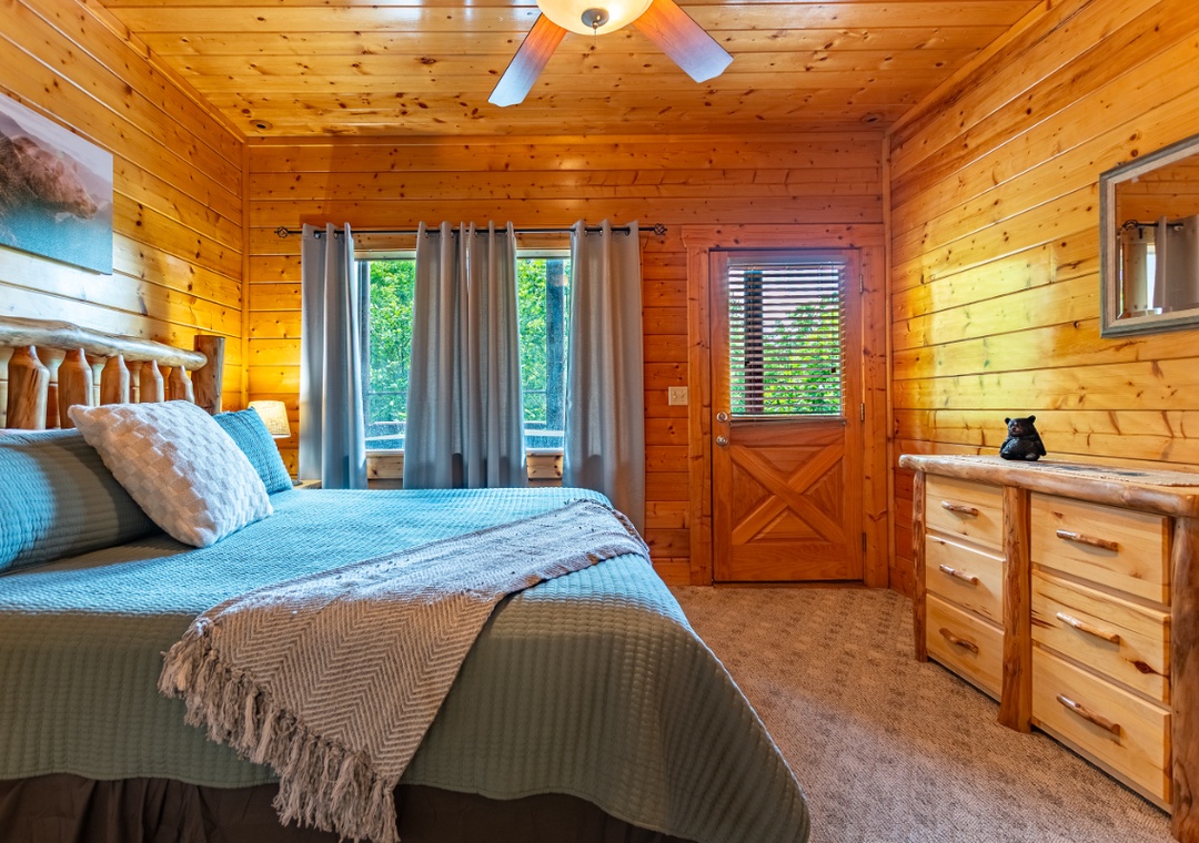 Bedroom #3 (downstairs): Spacious bedroom with King-sized bed; Access to full bathroom off the hall