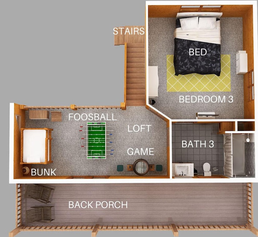 The Bear Hug was the perfect cabin for our family vacation! It’s close to the main road (Parkway), but still nestled in a more private feeling wooded area. All three floors had great spaces to hang out and have fun— the arcade table was an especially big hit with all kids (ages ranging 3- 16) and adults!