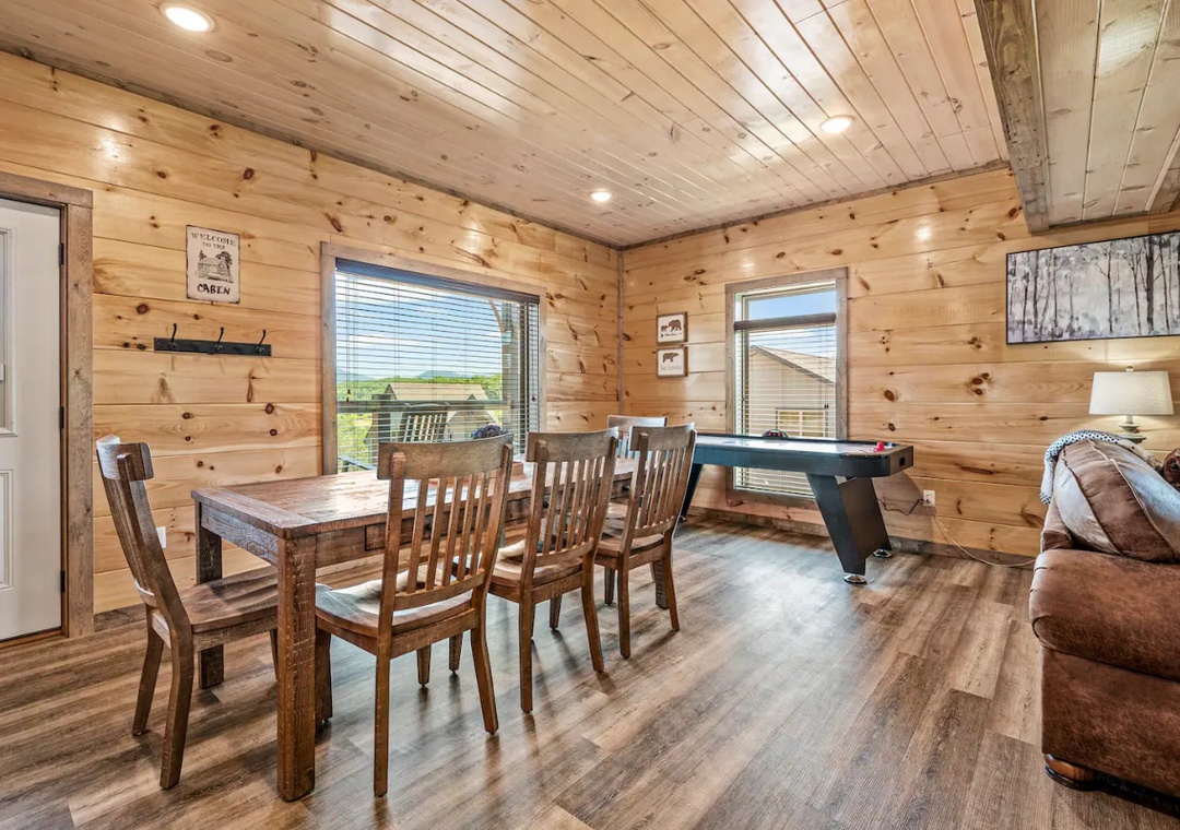 What a great weekend! The cabin was beautiful and very clean. Highlights included the beautiful back deck, hot tub, and air hockey.- Reviewed On: 10/22/2023