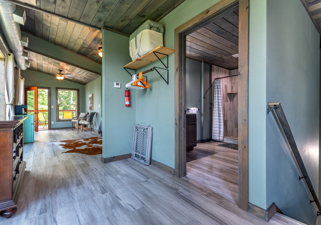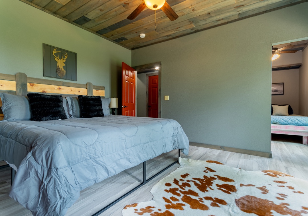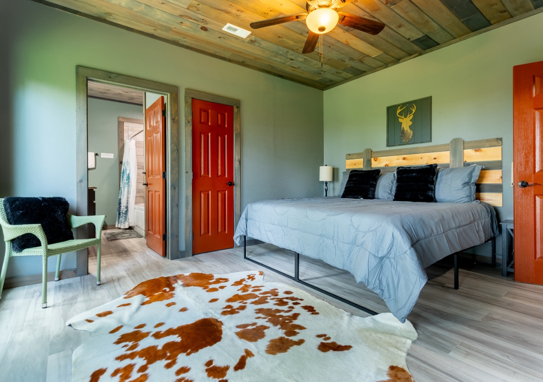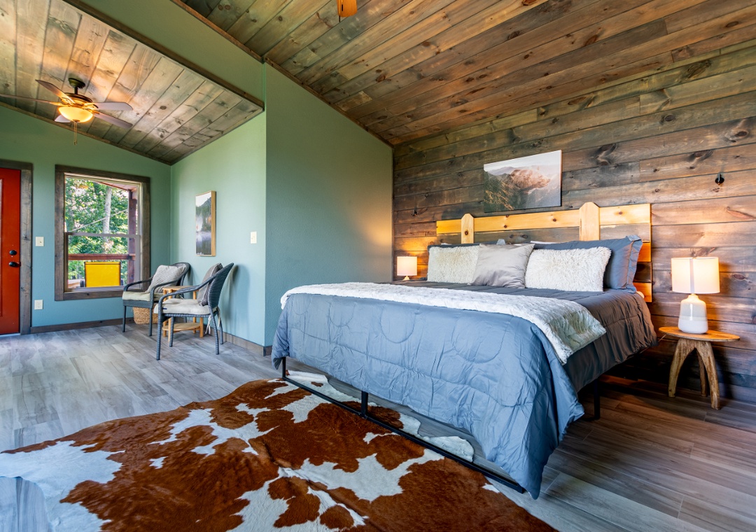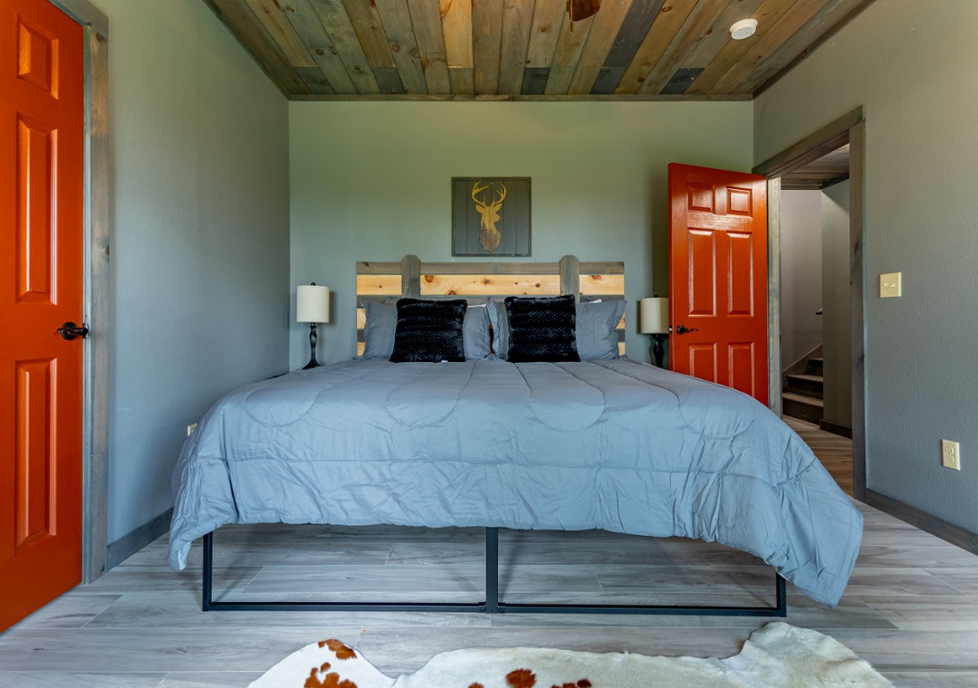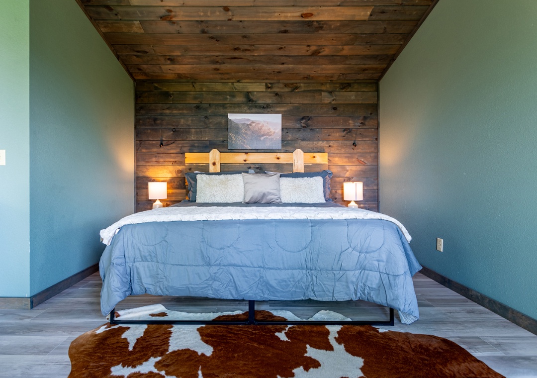 ✔ Bedroom #2 (Loft): Comfy King-sized Bed and Flatscreen TV; Attached Full Bathroom with Stand Up Shower