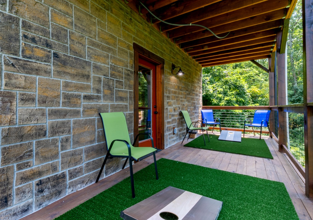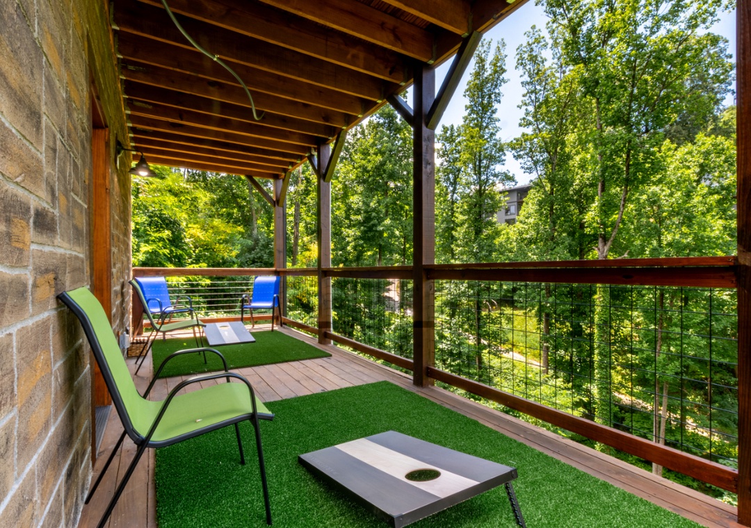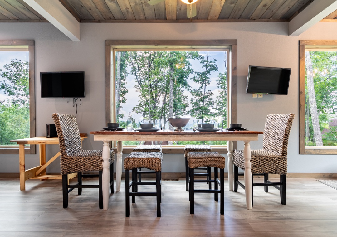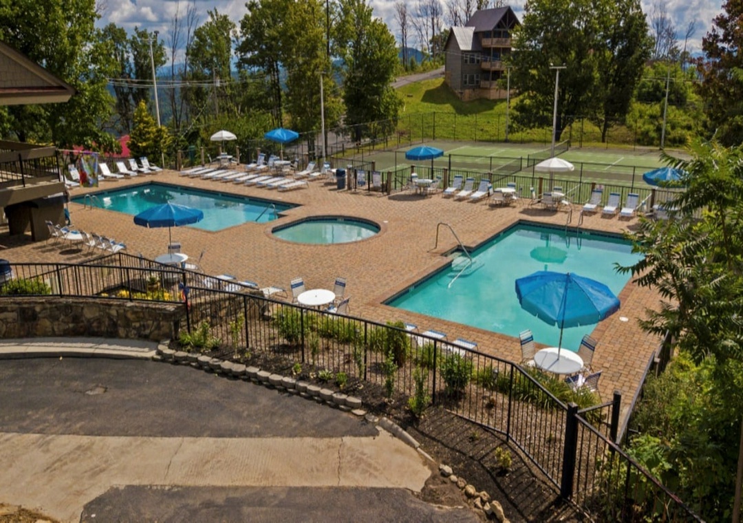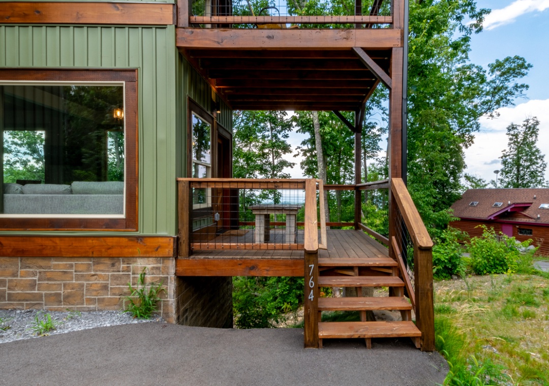 Entertainment is at the heart of “Bear Observatory”. The cozy living room is equipped with a flat-screen TV, perfect for movie nights or catching up on your favorite shows. Complimentary high-speed Wi-Fi ensures you can stream seamlessly or stay connected with loved ones. Step out onto one of the three expansive decks and breathe in the crisp mountain air. The decks provide the ideal setting for morning coffee, evening cocktails, or simply relaxing with a good book as you watch for bears and other wildlife. Indulge in the ultimate relaxation with the cabin's private hot tub located just outside the main level back door. Let the bubbling waters melt away your stress as you soak in the serene ambiance. And during the summer months, take advantage of the seasonal community pool, a refreshing option for cooling off and enjoying some family fun.