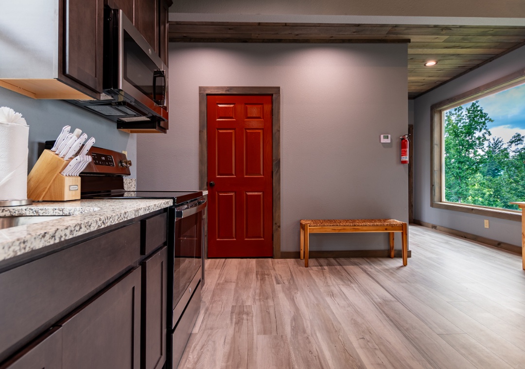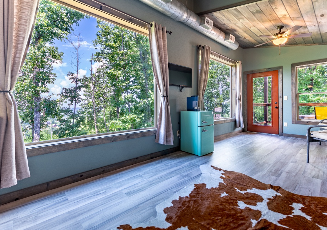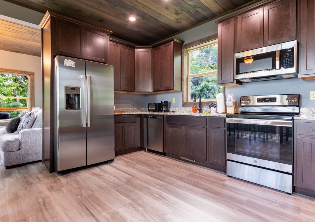 This is an extremely nice cabin with upgraded amenities. This cabin felt almost new and everything was nicely decorated. There are a ton of large windows where you can stare off into the valleys and wilderness.