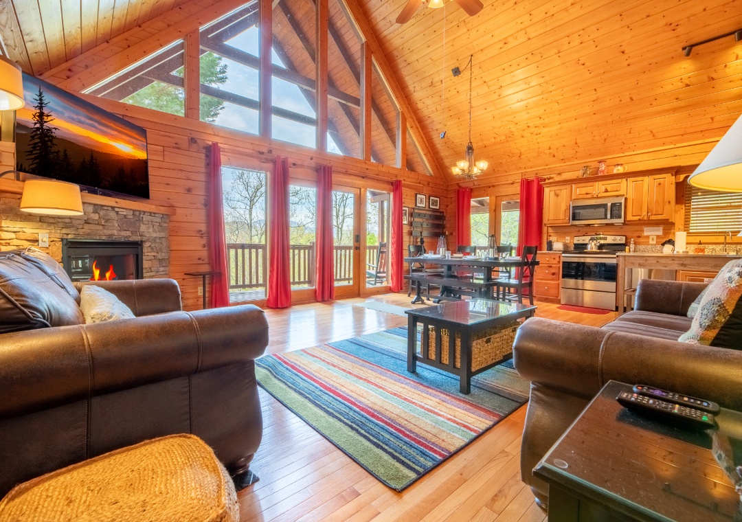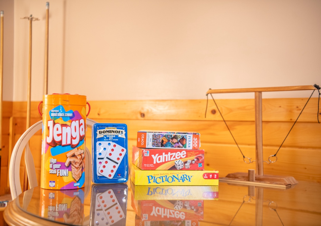 At the heart of Bear Ridge is a game lover’s paradise. The fully loaded game room is where everyone will want to gather. Try your skills on the pool table or take a nostalgic trip down memory lane with the Multicade arcade system, stocked with dozens of classic games. Prefer something a little more modern? Fire up the XBOX One and dive into your favorite titles for hours of adventure. And for those moments when you just want to have a good laugh and test your aim, the ring toss game adds a classic, laid-back option to the mix. The living room also offers another hub for entertainment. Sink into the plush seating in front of a gas fireplace and enjoy a movie night or a big game on the 50" Smart TV. But the fun doesn’t stop indoors. On the main level side deck, a private hot tub offers a perfect place to relax after a day of activities. Whether it’s a peaceful morning soak or a late-night dip under the stars, the bubbling warmth and mountain air make it a can't-miss experience. When summer rolls around, the entertainment extends to the community as well. Guests at Bear Ridge have access to a seasonal community pool, open from Memorial Day to Labor Day. It’s the perfect spot to cool off on sunny days, lounge poolside with a drink, or let the kids splash and play while you soak up the sun.