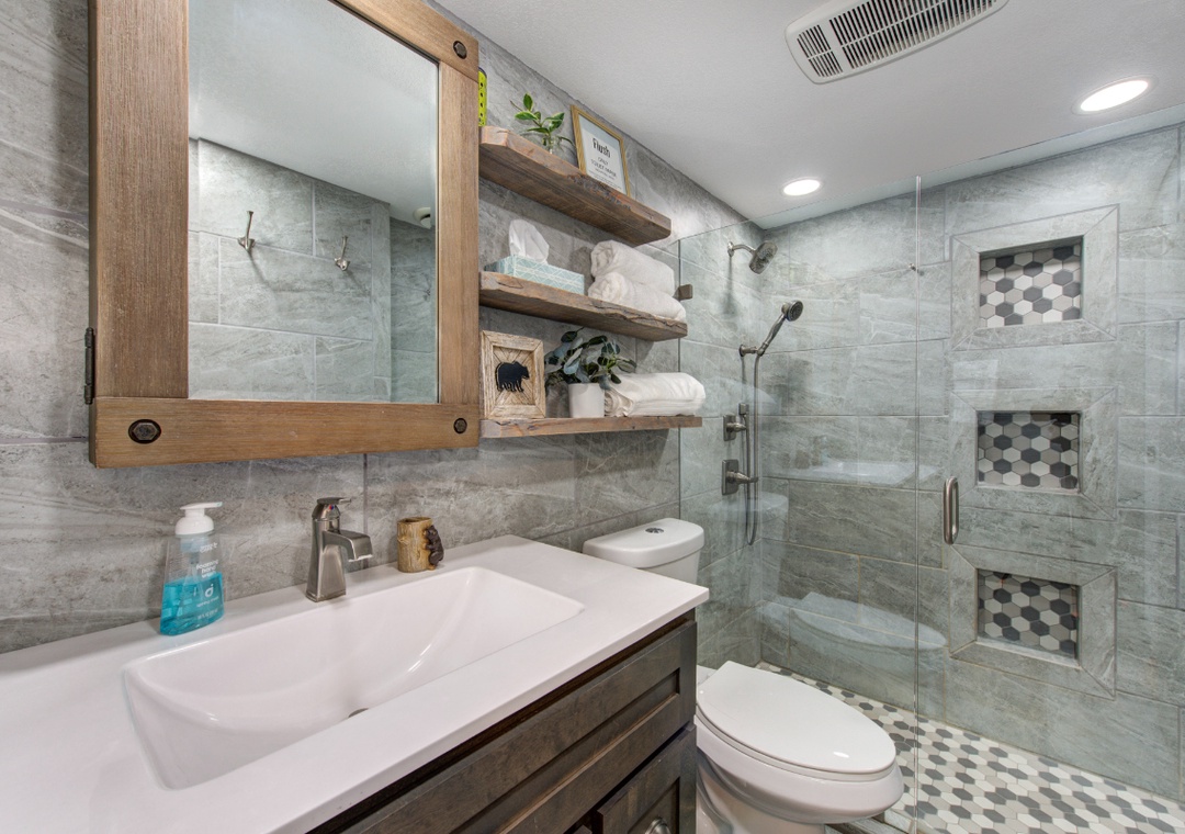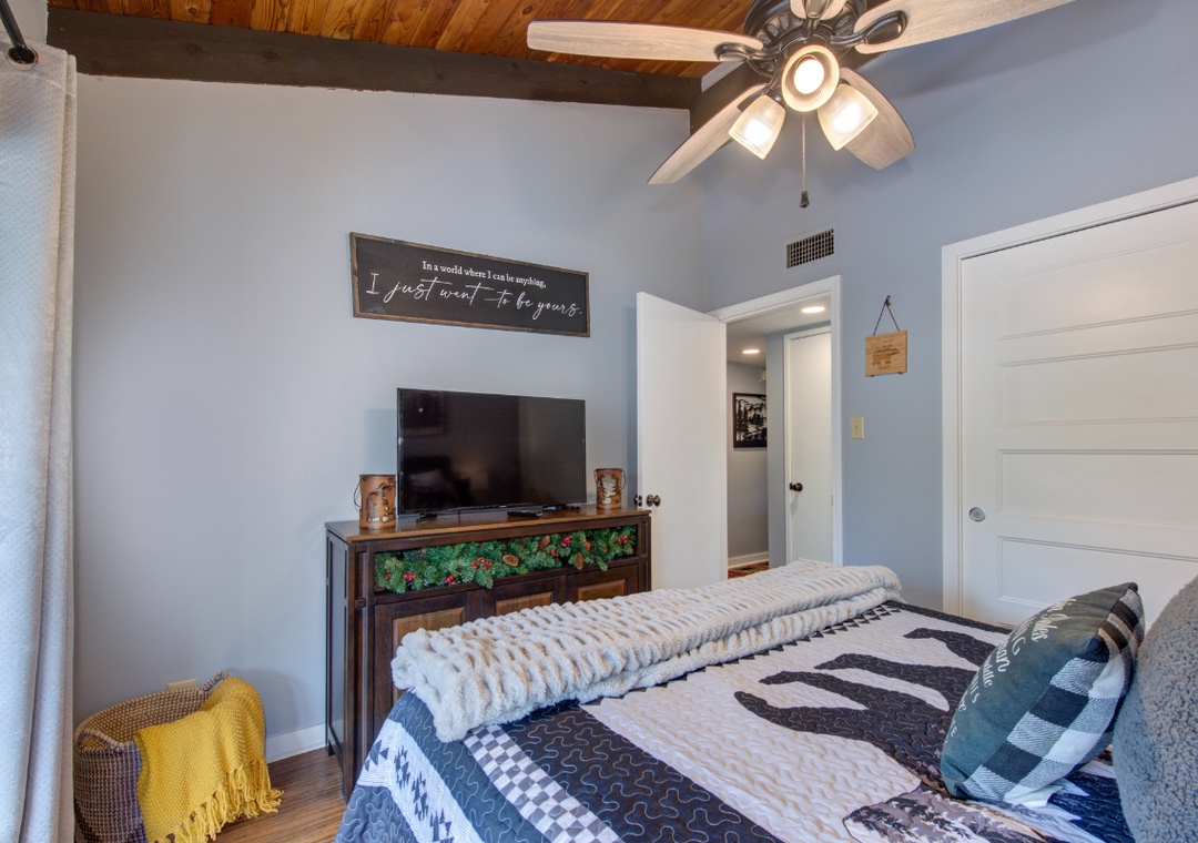 ✔ Bedroom 1 (Main Level): Comfortable Bedroom with a Queen-Bed and a flatscreen TV; Access to a Full Bathroom with Stand Up Shower