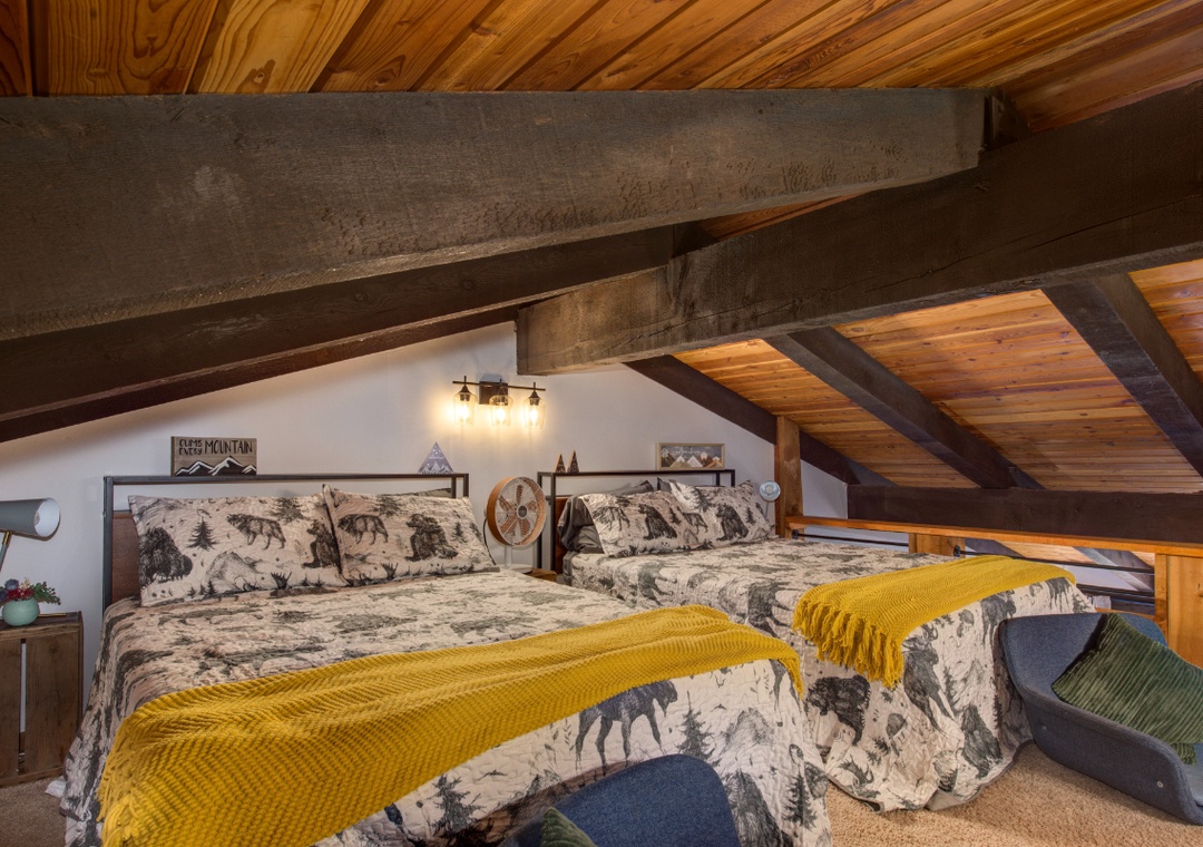 ✔ A Queen Sleeper Sofa in the Living Room and 2 Full Beds on the loft, both with Twin Trundles, for additional sleeping space