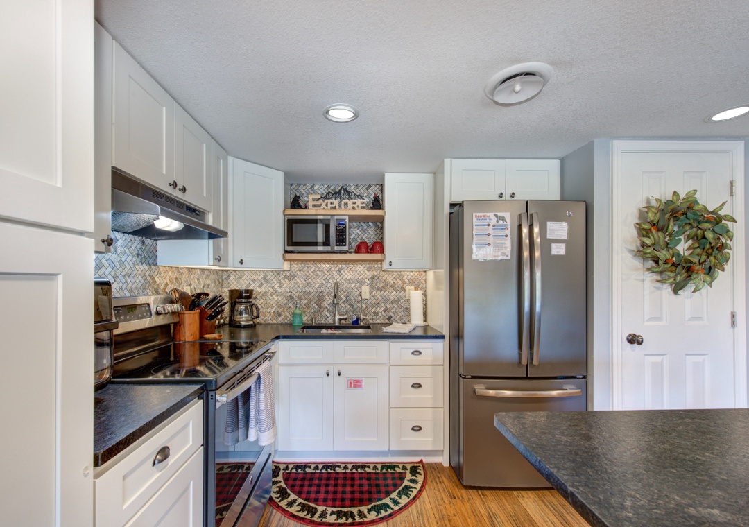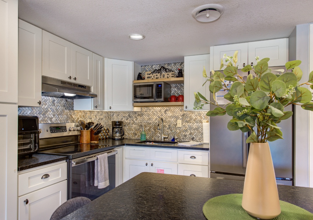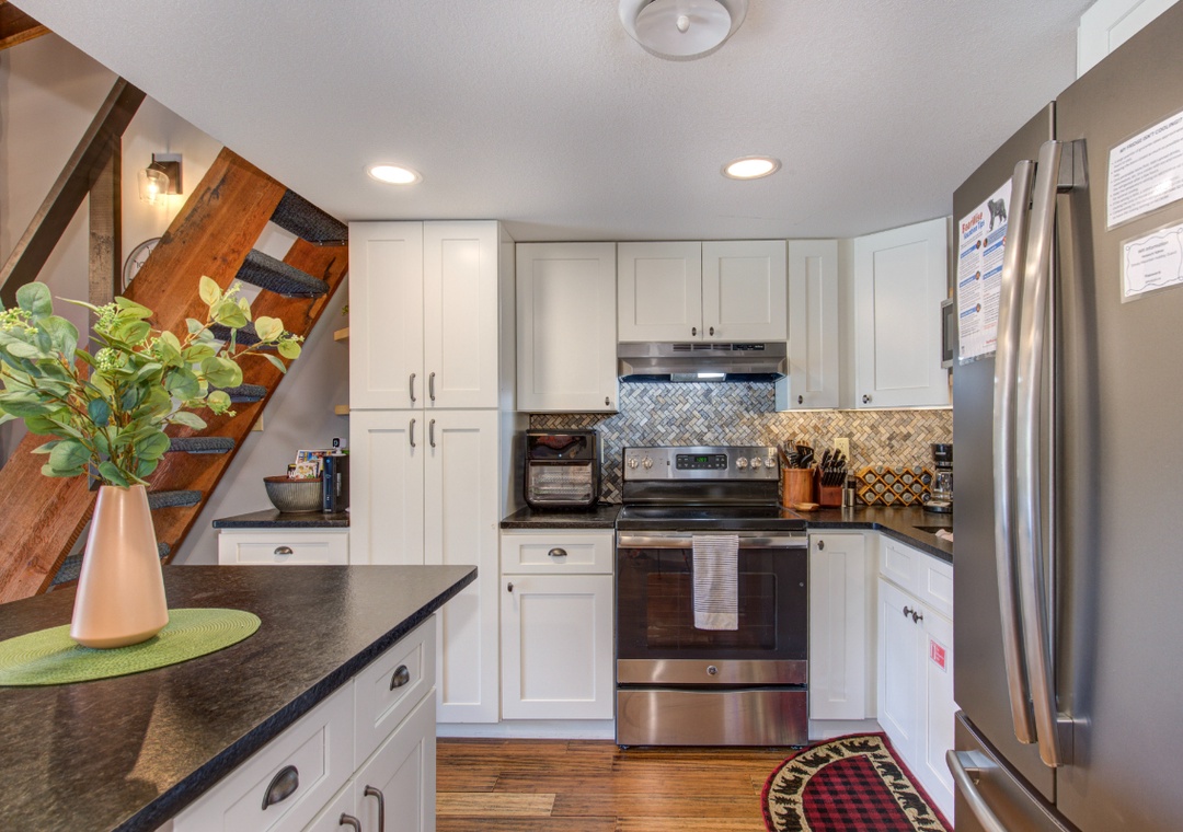 The fully-equipped kitchen boasts modern amenities, making it easy to prepare delicious meals for your family or friends. Well-appointed with a refrigerator, stove, microwave, and other kitchen appliances, perfect for making breakfast, lunch, or dinner throughout your stay! All pots, pans, glasses, plates, silverware, etc., are also there for you! Gather around the inviting dining area to share stories and laughter while gathering over a delicious meal.