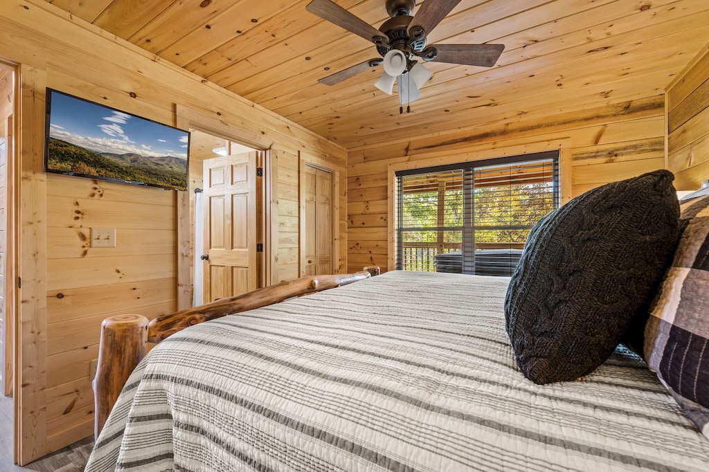 We simply loved Justin’s cabin - it was the perfect set up with 4 single beds in the game area and two bedrooms downstairs. Beautifully decorated and amazing sights!! Thank you for an amazing stay…can’t wait to come back!- Reviewed On: 10/16/2023