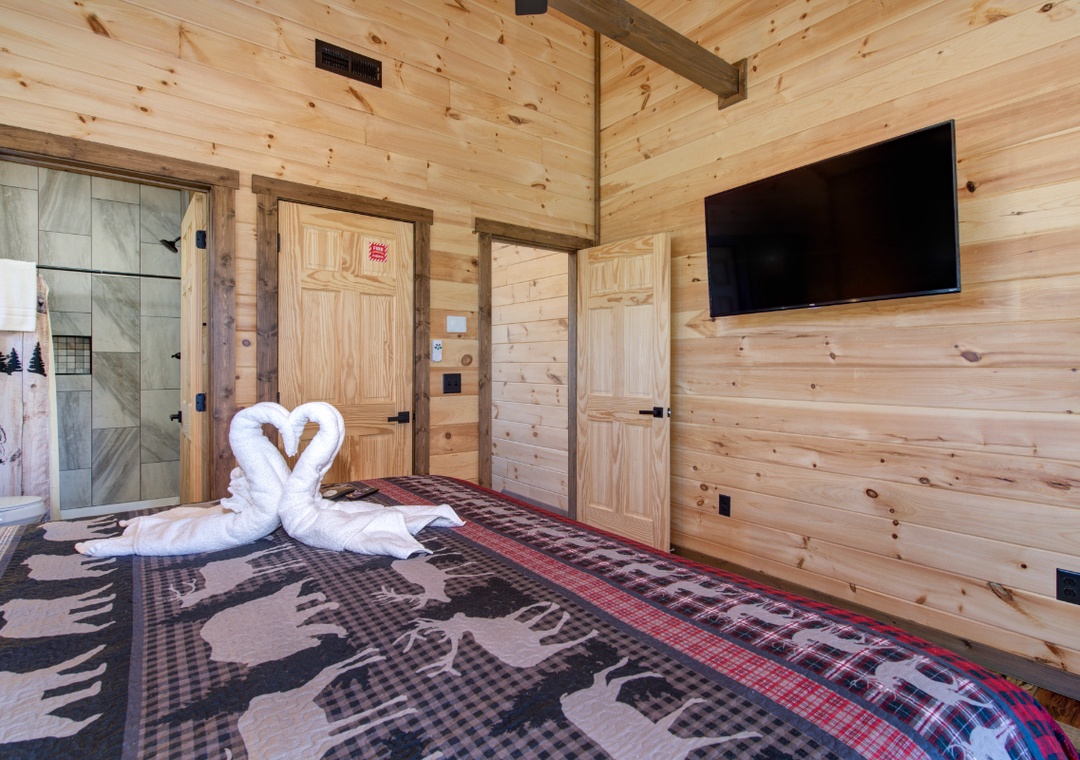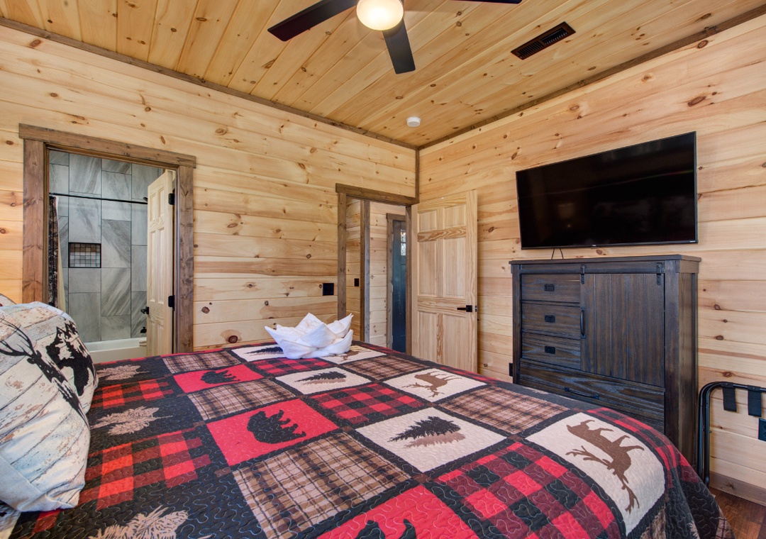 ✔ Bedroom #2 (Upper Level): Relaxing Bedroom with a King-Bed and Flatscreen TV; Attached Full Bathroom with Stand Up Shower