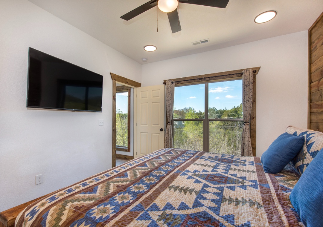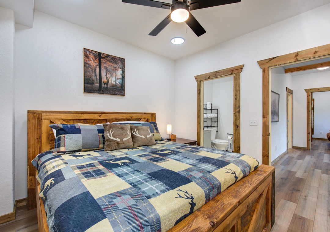 ✔ Bedroom #1 (Main Level): Spacious Bedroom with a King-sized Bed and a Flat-screen TV; Attached Full Bathroom with Stand Up Shower