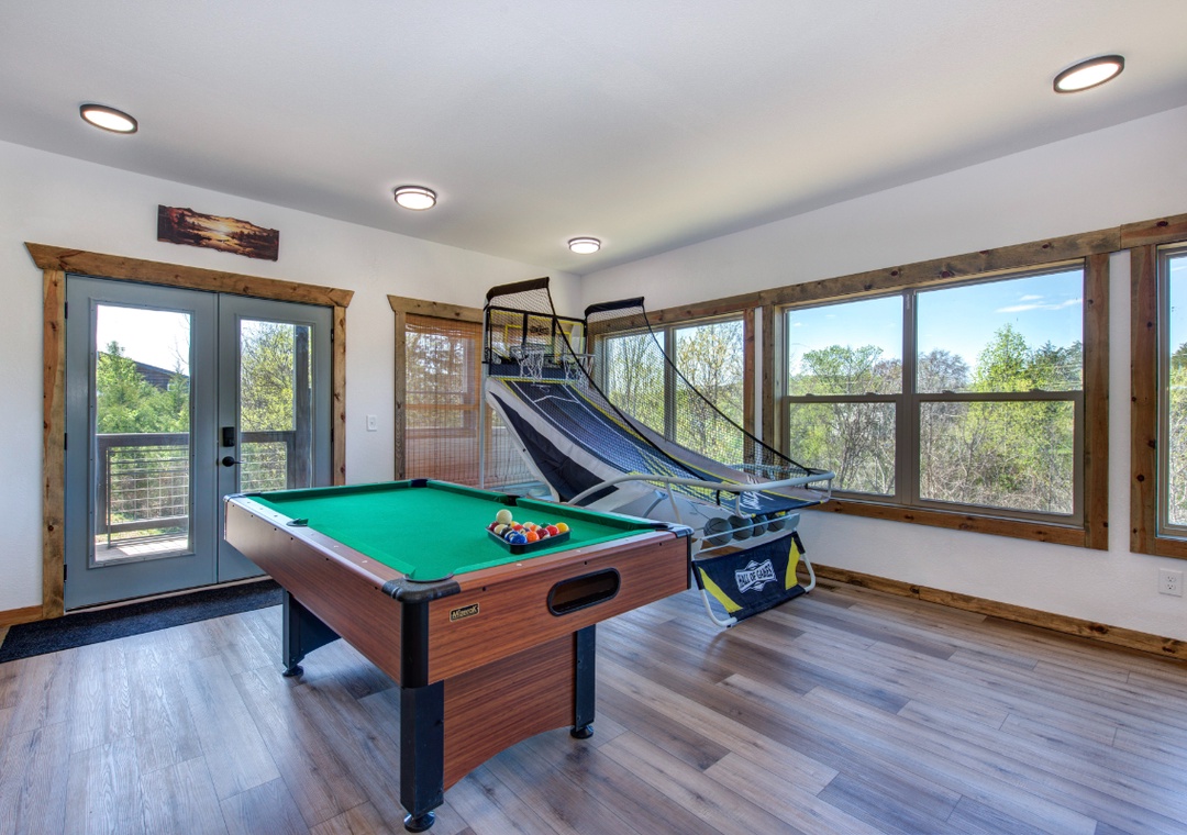 Start in the main living area featuring a 65” Vizio Smart TV ideal for streaming your favorite shows or setting up a movie night. But the real showstopper? The fully loaded downstairs game room. Start with the second 65” Vizio Smart TV, perfect for gaming on the XBOX One X, sports nights, or movie marathons with the whole crew. The electric fireplace downstairs adds ambiance and warmth, making the space just as cozy as it is exciting. Game lovers will have a field day with the pool table and right next to it, the basketball shooting game brings that arcade-style action right into your mountain retreat. Step outside the game room to the back deck, where the private hot tub awaits. After a day full of activities, there’s nothing like slipping into warm, bubbling water surrounded by the quiet of the woods. Up on the main level side deck, you’ll find a propane grill ready for cookouts. Fire up some burgers or grill fresh meat, then enjoy your meal on the deck’s alfresco dining area, surrounded by mountain air and resort views. It’s the perfect setup for casual meals and sunset dinners alike. And if you’re visiting in the warmer months, “Bearfoot Timbers” also gives you access to a seasonal outdoor pool at the nearby resort clubhouse, open from Memorial Day to Labor Day. It’s a great way to mix up the fun with a day of swimming and sunbathing. While parking at the clubhouse is limited, it is within easy walking distance, making it simple to enjoy this extra perk.