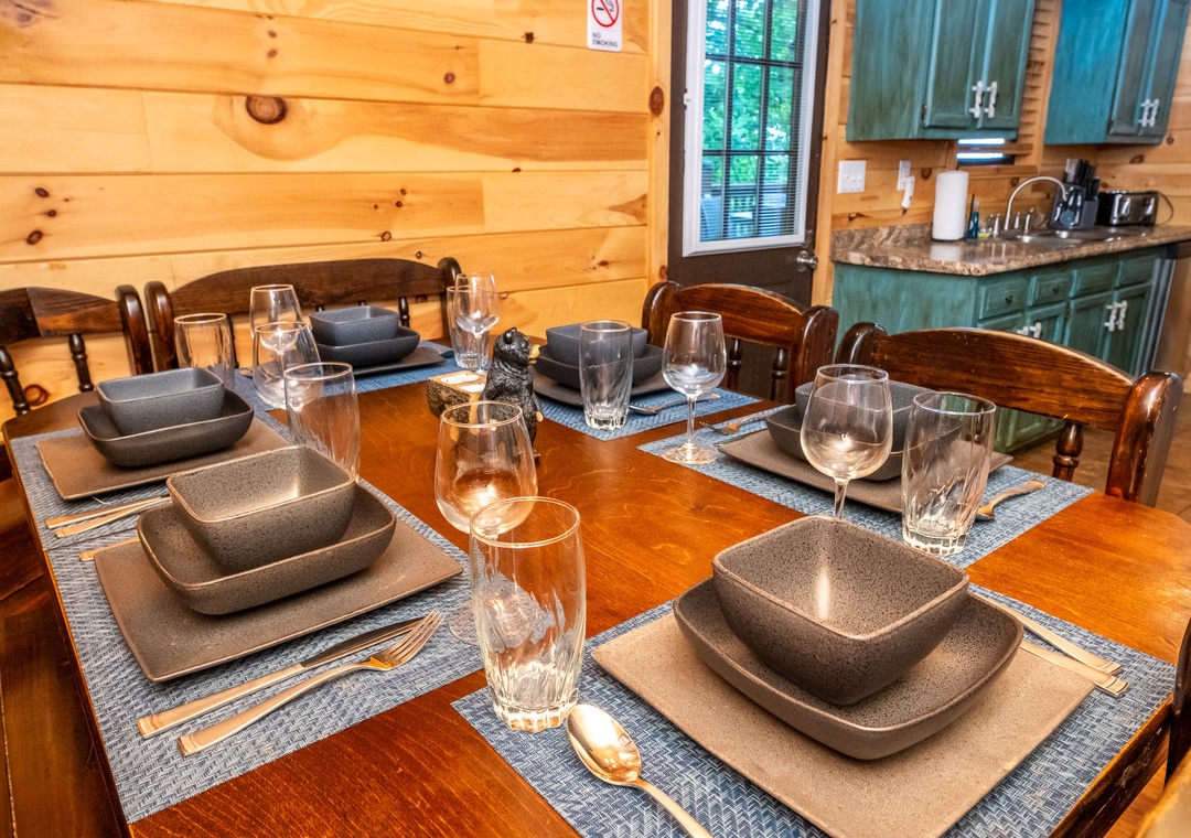The fully equipped kitchen boasts modern amenities alongside traditional touches, making it easy to prepare delicious meals for your family or friends. Well-appointed with a full-sized refrigerator, dishwasher, stove, microwave, and other kitchen appliances perfect for making breakfast, lunch, or dinner throughout your stay! All pots, pans, glasses, plates, silverware, etc. are also there for you! Gather around the wooden dining table or the al fresco dining area to share stories and laughter as it invites you to savor each bite while taking in the natural beauty of the surroundings.