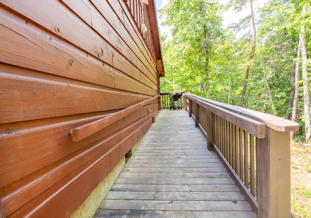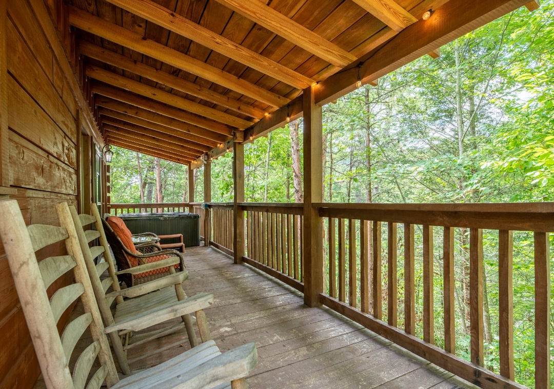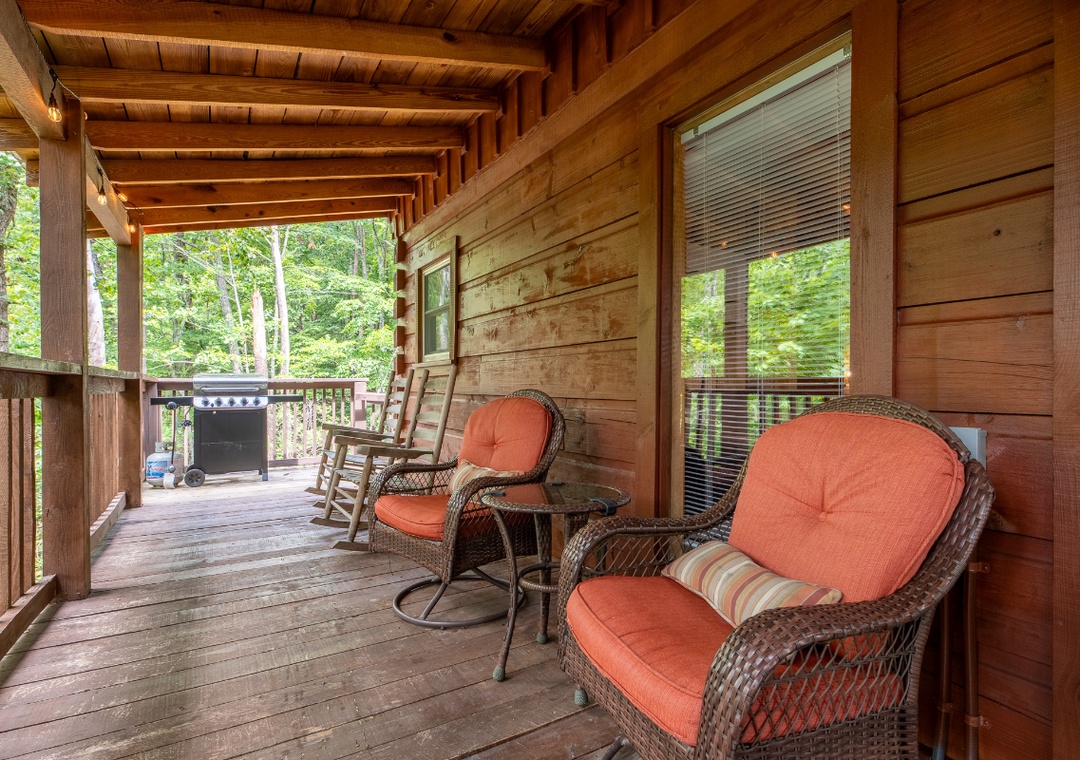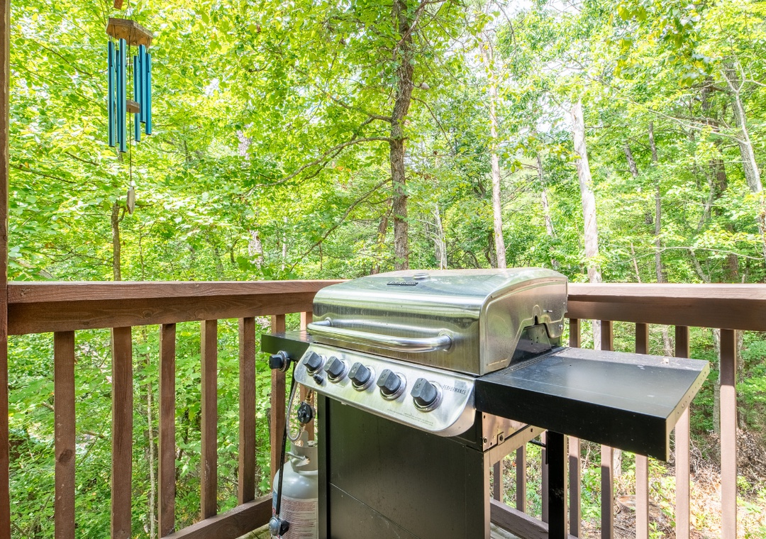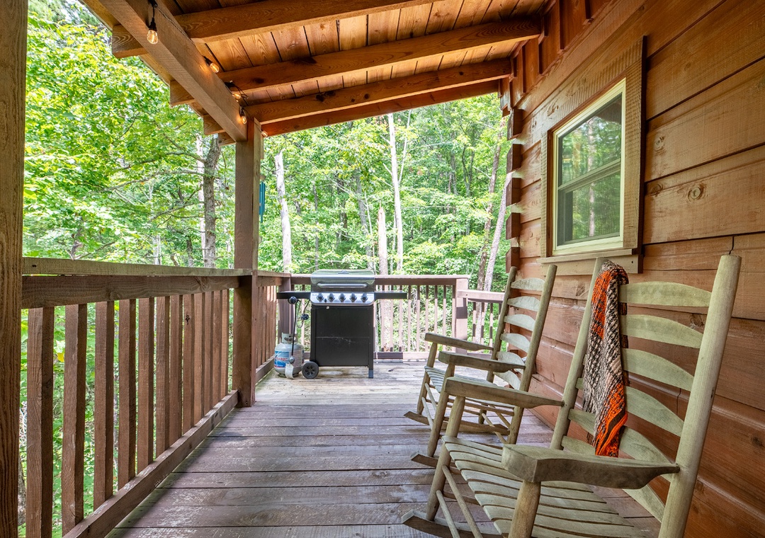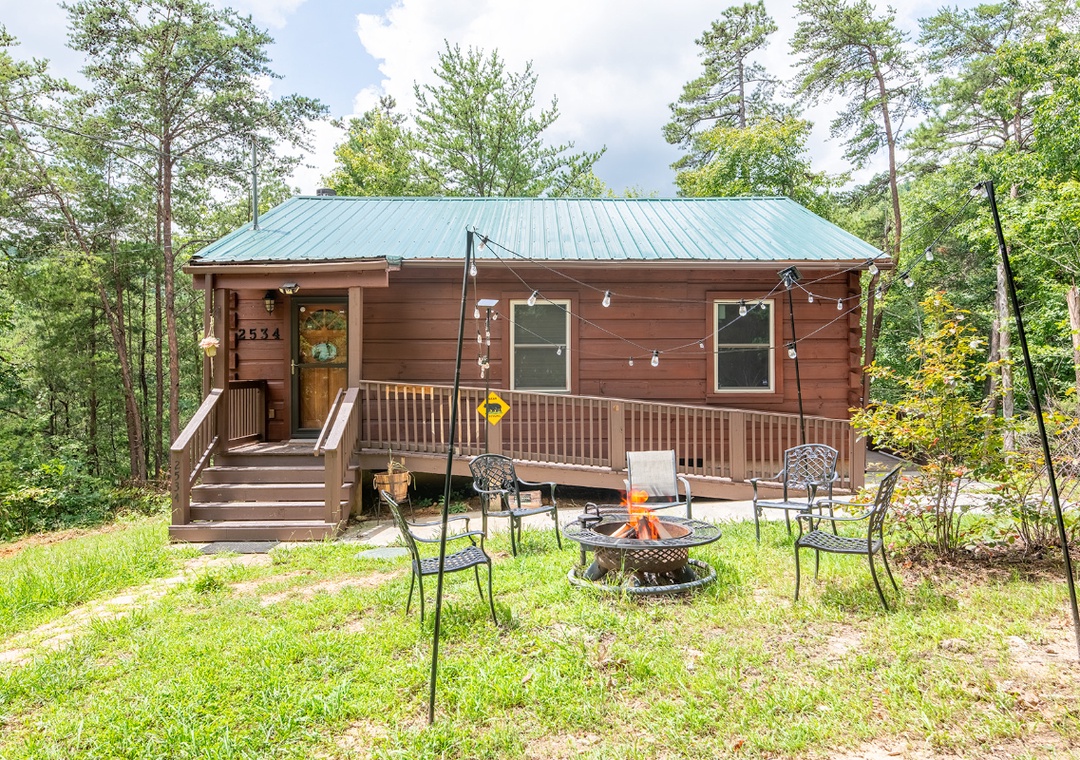 Inside, the living room is a warm and inviting hub for relaxation, featuring a propane fireplace that sets the perfect atmosphere for movie nights or game time. A Smart TV with a DVD player and sound bar ensures you can stream your favorite shows, watch classic movies, or enjoy a full cinematic experience without ever leaving the comfort of the cabin. For an added dose of fun, the living room also boasts a classic arcade game. Step outside onto the private back deck and you’ll find a bubbling hot tub that’s perfect for unwinding under the stars after a day of adventure. There’s also a propane grill for outdoor cooking, so you can turn mealtime into a social event while taking in the beautiful wooded views. In front of the property, a wood-burning firepit awaits, ideal for roasting marshmallows, telling stories, and enjoying the magic of a Smoky Mountain evening. You’re also just 20 minutes from the vibrant attractions of Pigeon Forge, where you can enjoy dinner shows, mini golf, arcades, shopping, and family-friendly theme parks. After a day of adventure, you can return to the comfort of Beary Cozy Cabin to keep the fun going with a relaxing hot tub soak or another round of movies and popcorn.