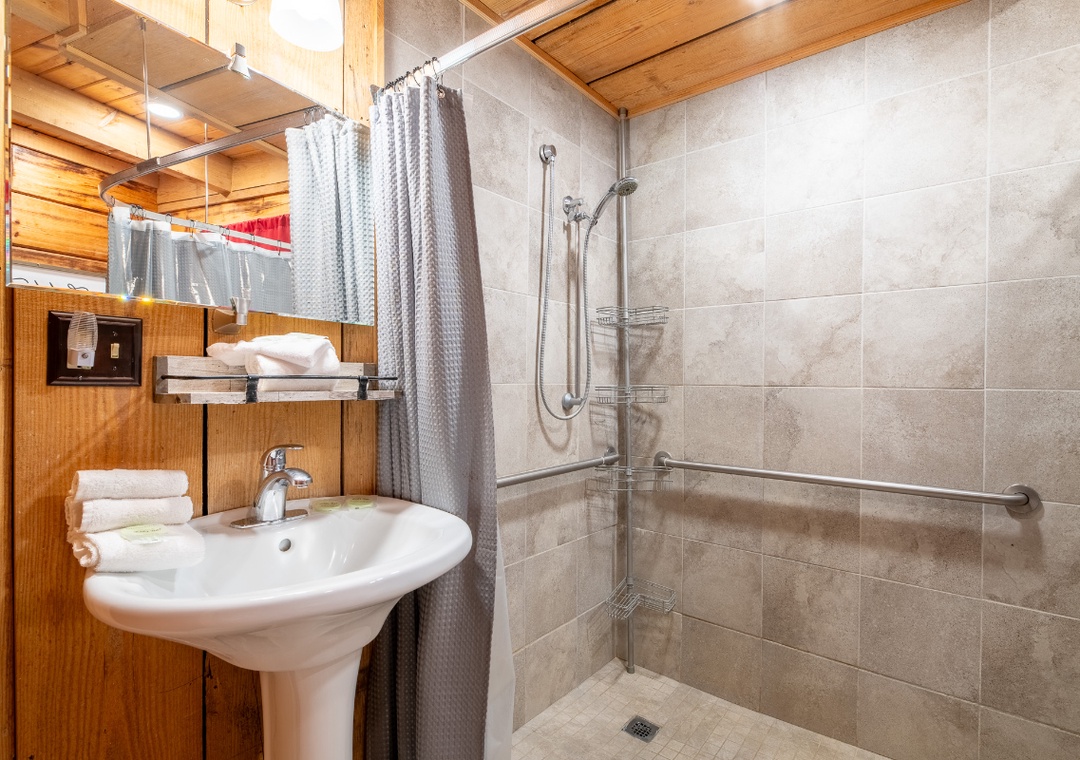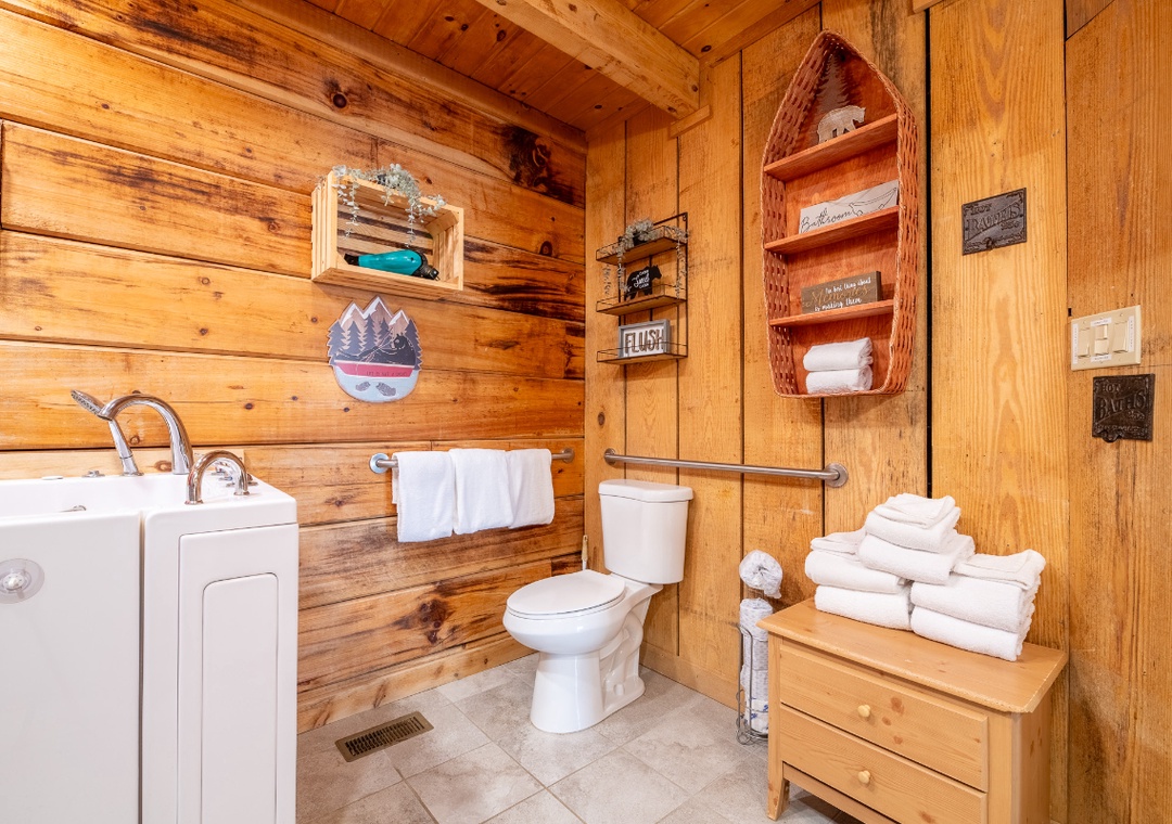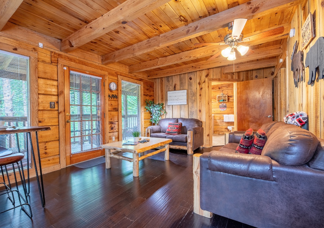 Our single-level, no-stairs cabin is thoughtfully designed for accessibility, making it a wonderful choice for couples, honeymooners, small families, and anyone who appreciates a stress-free, easy-to-navigate layout. Our floor plan is ideal for families and couples alike and is the perfect get-a-way, so pack your bags – because the mountains are calling!