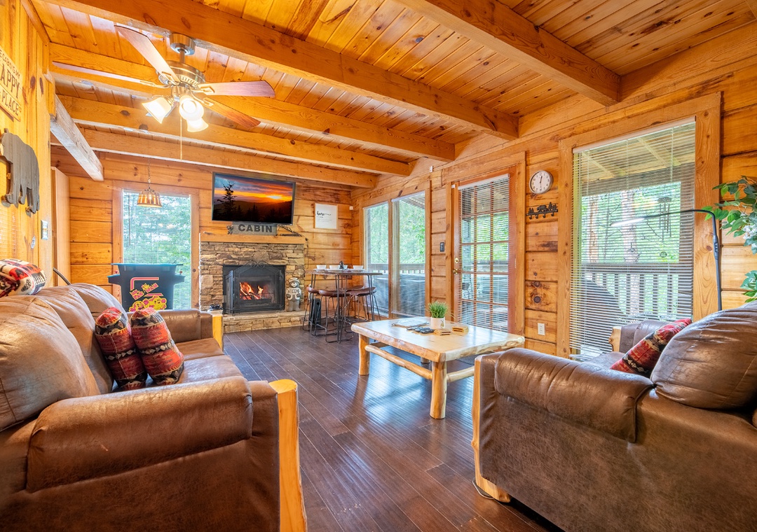 Welcome to "Beary Cozy Cabin," where the charm of rustic mountain living meets modern comfort, and every moment is surrounded by the peaceful beauty of the Smoky Mountains. Surrounded by the quiet beauty of the forest, it feels tucked away from the world, yet it’s conveniently located just 20 minutes from the exciting attractions, shops, and restaurants of Pigeon Forge. ★Private Hot Tub ★Living Area w/ Fireplace ★Arcade ★Wood Firepit ★BBQ Grill ★DVD Player ★Serene Wooded VIEWS!
