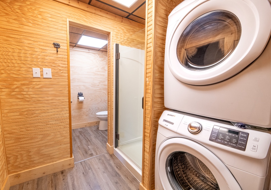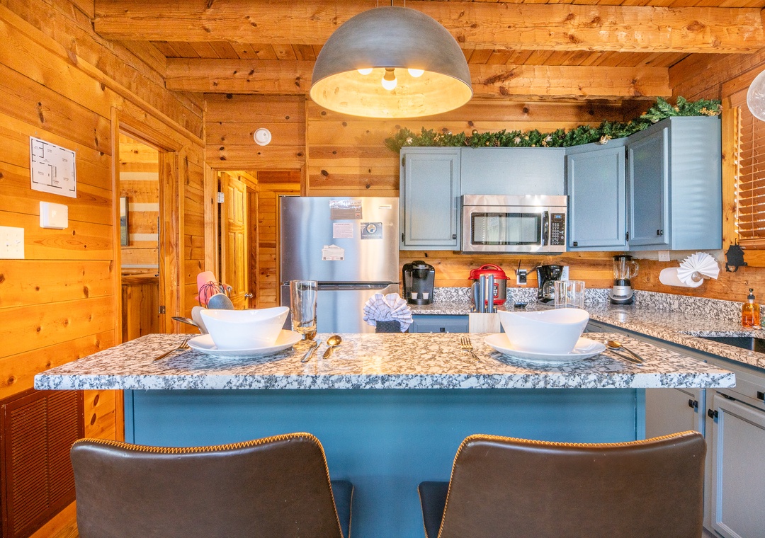 The fully-equipped kitchen boasts modern amenities making it easy to prepare delicious meals for your family or friends. Well-appointed with a full-sized refrigerator, dishwasher, stove, microwave, and other kitchen appliances perfect for making breakfast, lunch, or dinner throughout your stay! All pots, pans, glasses, plates, silverware, etc. are also there for you! Gather around the inviting dining table to share stories and laughter as it invites you to savor each bite while taking in the natural beauty of the surroundings.