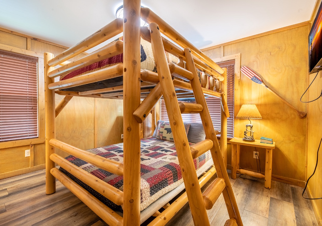 ✔ Bedroom #4 (Upper Level): Inviting Bedroom with a Queen-over-Queen Bunk Bed and a Flat-screen TV; Attached Full Bathroom with Shower/Tub Combo