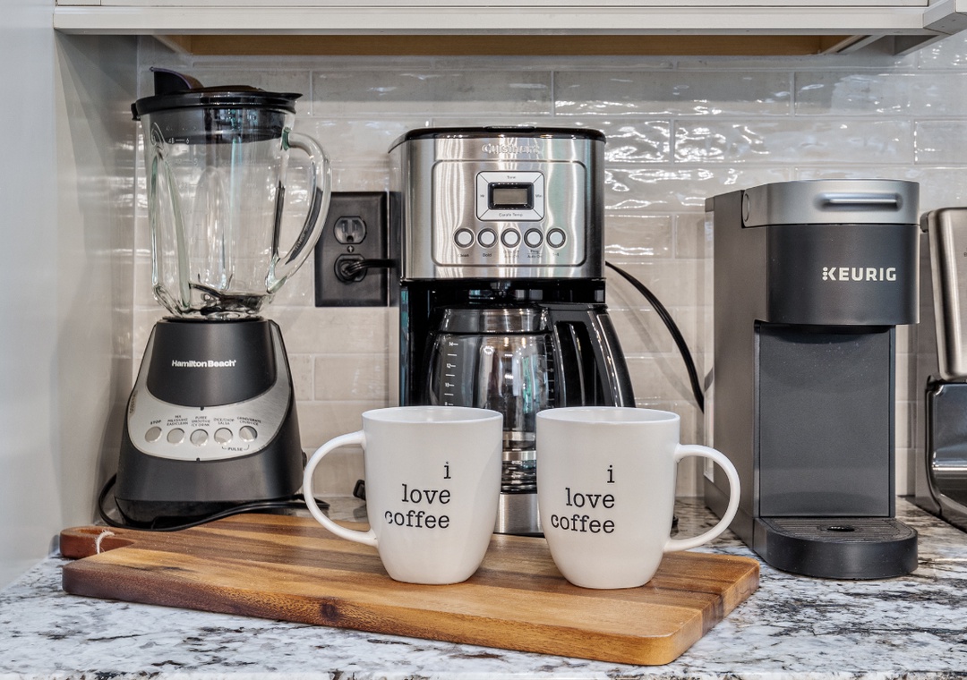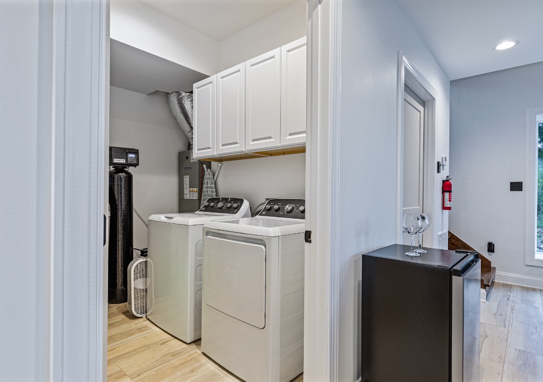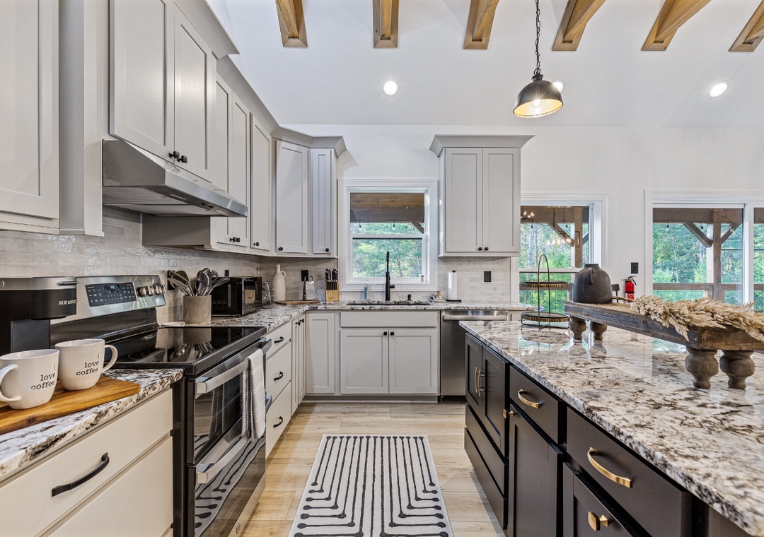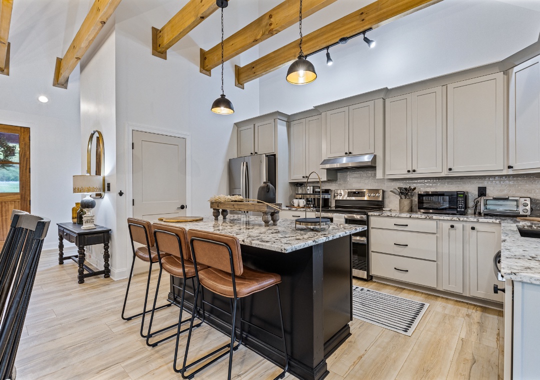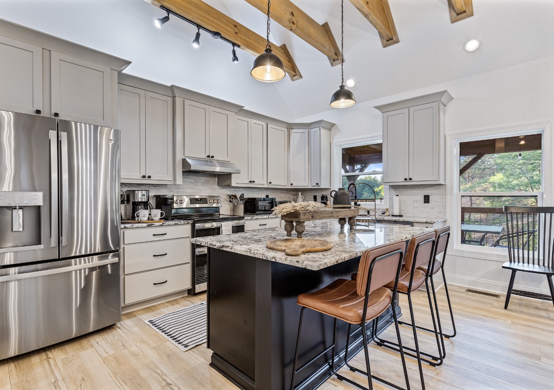 The fully-equipped kitchen boasts modern amenities making it easy to prepare delicious meals for your family or friends. Well-appointed with a full-sized refrigerator, dishwasher, stove, microwave, and other kitchen appliances perfect for making breakfast, lunch, or dinner throughout your stay! All pots, pans, glasses, plates, silverware, etc. are also there for you! Gather around the inviting dining table or the breakfast bar to share stories and laughter as it invites you to savor each bite while taking in the natural beauty of the surroundings.