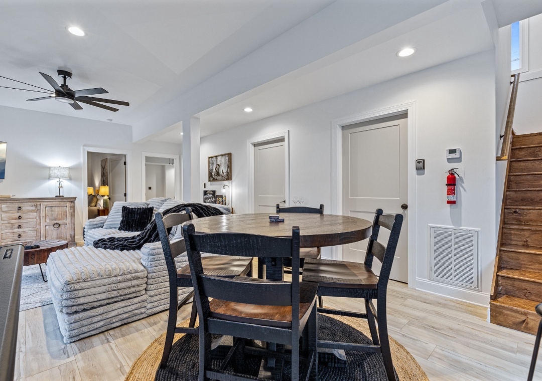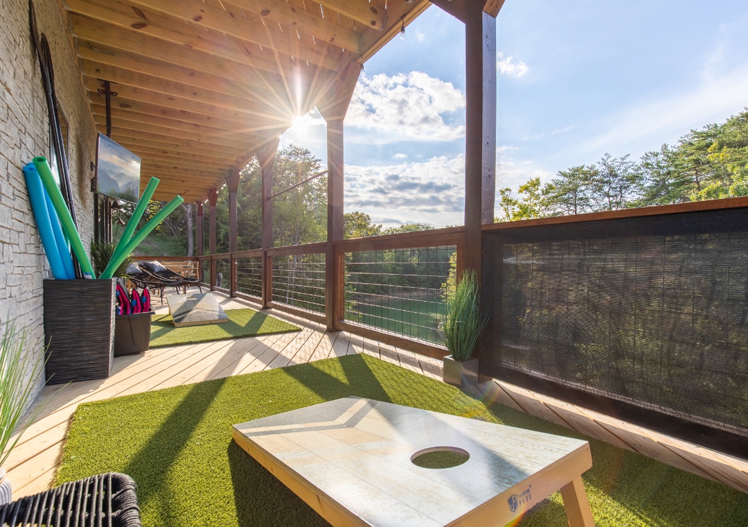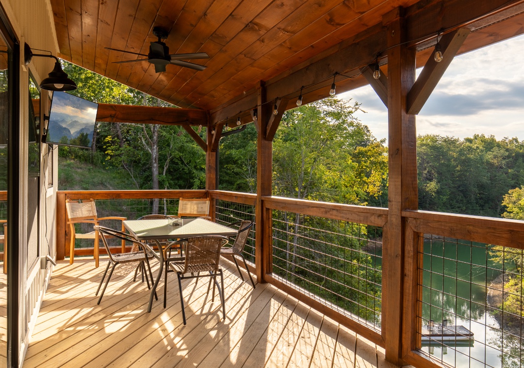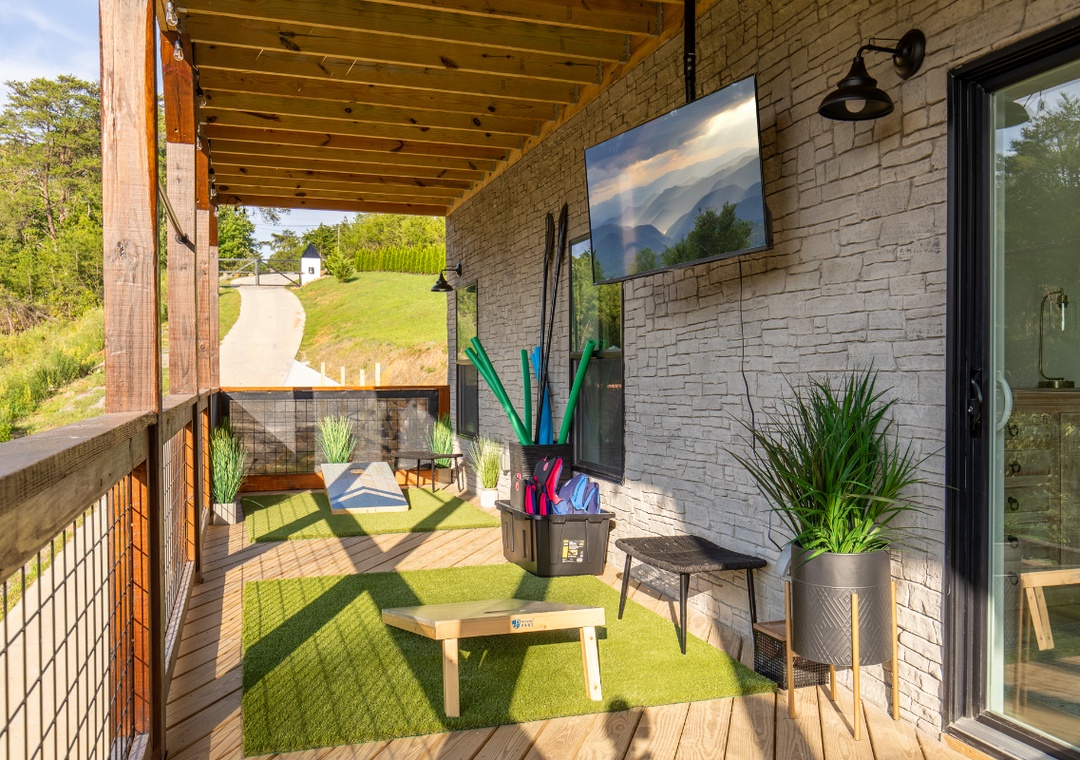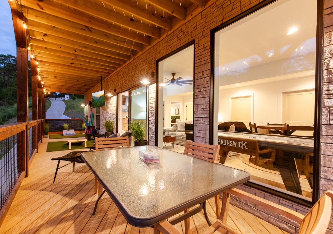 Perfectly situated on the side of a cove, our lodge is packed with amenities that will keep everyone entertained from sunrise to sunset. Start with the park-style grill, ideal for cooking up a feast while enjoying the fresh mountain air. On one of the specious decks, find a game of cornhole where you can challenge your friends and family to matches while soaking in the scenic views. Behind the lodge, you'll find a wood firepit, the perfect spot to gather in the evening. Picture yourself roasting marshmallows, telling stories, and enjoying the crackling fire under a canopy of stars. Inside, our lodge also features an arcade and an air hockey table ensuring that there’s never a dull moment during your stay. For those who prefer a bit of relaxation, the cabin also boasts a luxurious hot tub – a perfect spot for stargazing or simply relaxing in the warm bubbles. Outdoor enthusiasts will love the lodge's access to a nearby lake, where two kayaks are available for guests to use. Paddle along the serene waters and explore the natural beauty of the area. However, keep in mind that the lake is only full from May to September, making it a seasonal treat that adds a special touch to your summer stay.
