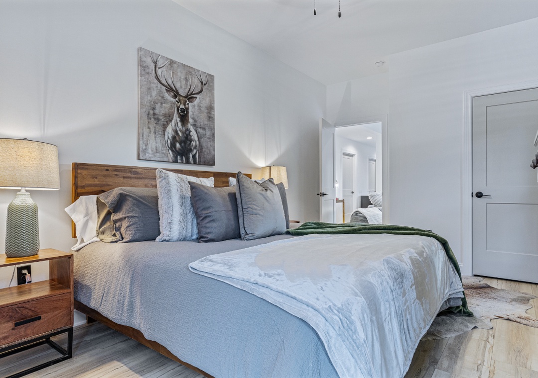 ✔ Bedroom #3 (Lower Level): Comfortable Bedroom with a King-sized Bed and a Flat-screen TV; Access to a Full Bathroom with Shower/Tub Combo