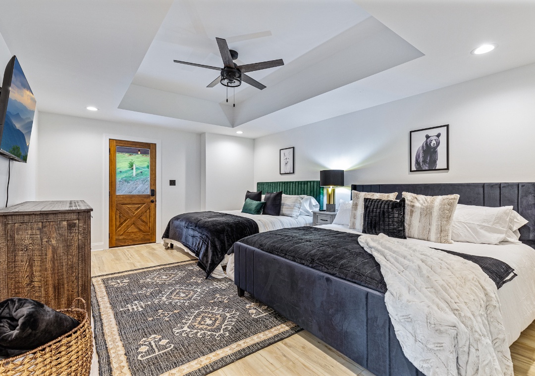 ✔ Bedroom #2 (Lower Level): Inviting Bedroom with 2 King-sized Beds and a Flat-screen TV; Access to a Full Bathroom with Shower/Tub Combo