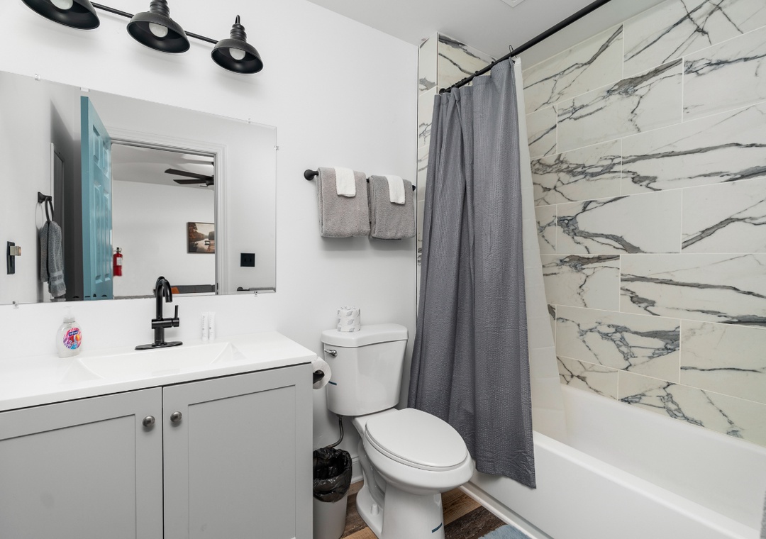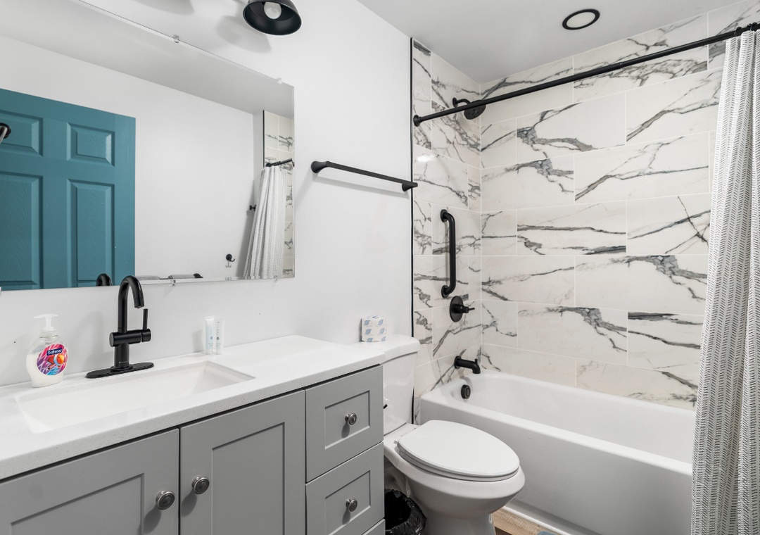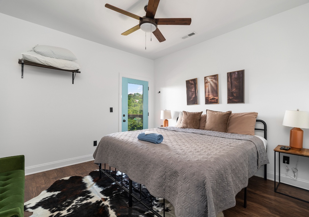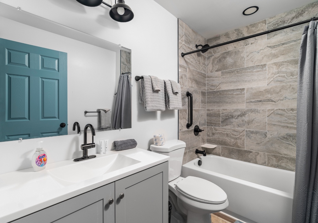 ✔ Bedroom #2 (Mid Level): Spacious Bedroom with a King Bed and Flat-screen TV, Attached Full Bathroom with Shower/Tub Combo