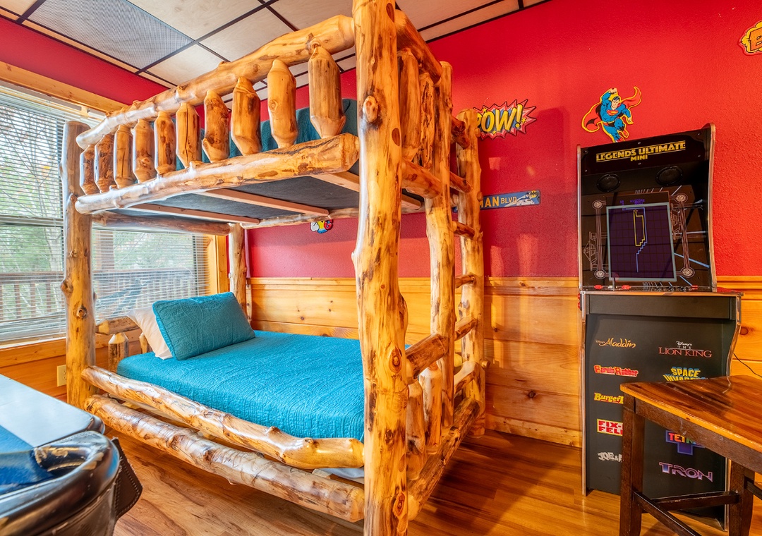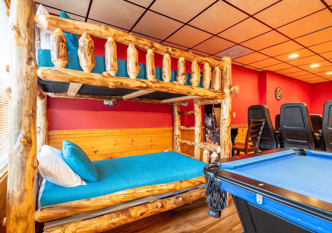 ✔ Game/Theater Room (Lower Level): Inviting Twin-over-Twin Bunk Bed + Sleeper Sofa
