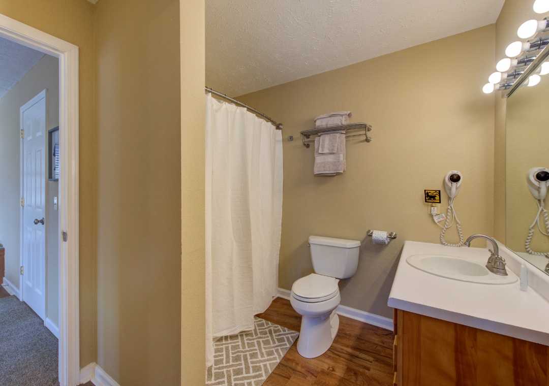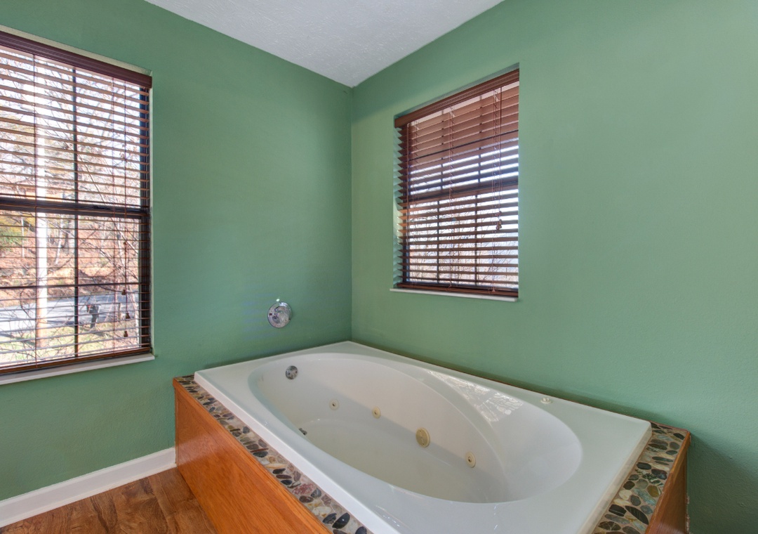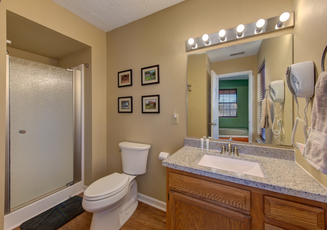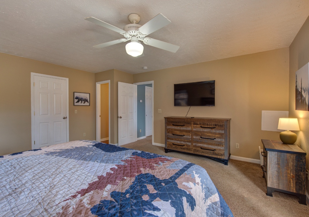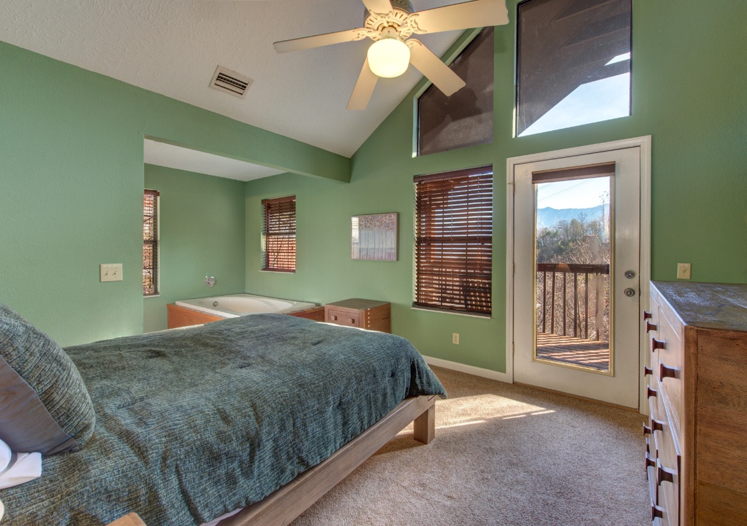 ✔ Bedroom #2 (Lower Level): Spacious Bedroom with a King-Bed and Flatscreen TV; Attached Full Bathroom with Shower/Tub Combo and Separate Jacuzzi